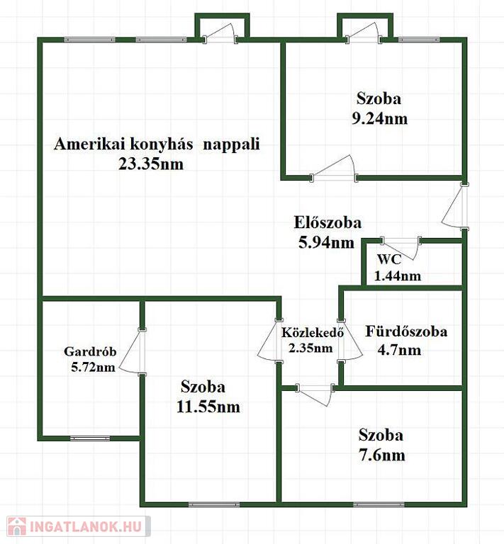 Az ingatlan 3 szobából és egy amerikai konyhás nappaliból áll, továbbá egy kis előtér is tartozik hozzá. A nappalihoz és az egyik szobához franciaerkély, egy másik szobához pedig külön gardróbszoba kapcsolódik. A fürdőszoba és a WC külön helyiségben található, ami kényelmes megoldást biztosít a mindennapokban.