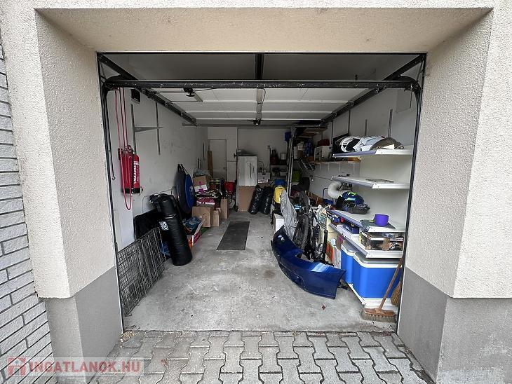 A garázsban a villamoshálózat ezáltal világítás és fűtés is elérhető, a behajtást elektromos garázsajtó segíti.