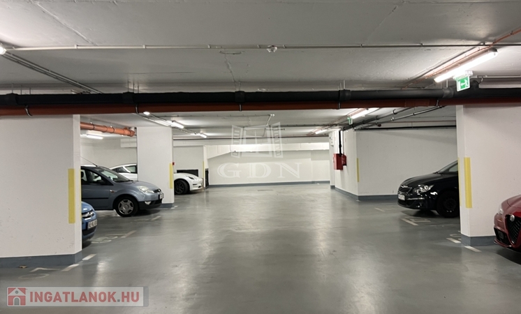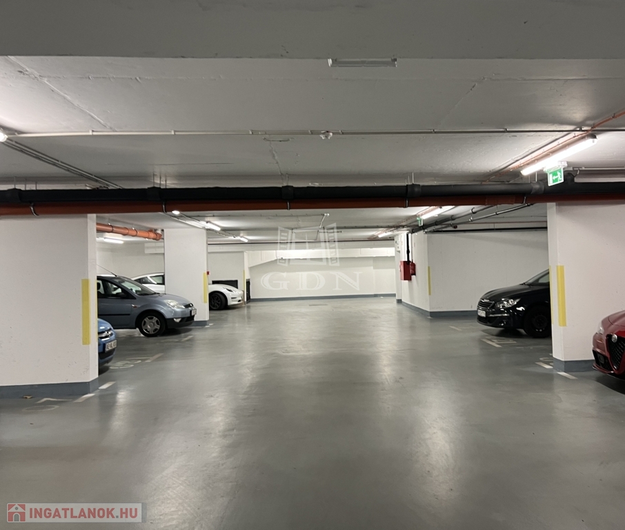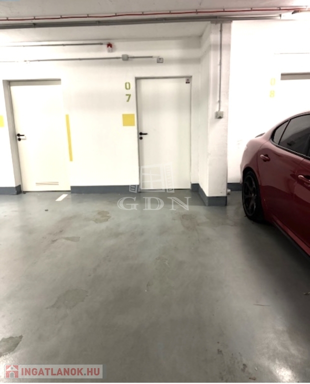 Eladó Budapest IX. kerület Rehabilitációs területen Márton utcai újszerű társasház teremgarázsában egy 12 négyzetméteres gépkocsibeálló 9 négyzetméteres garázsból nyíló, kulcsra zárható tárolóval.