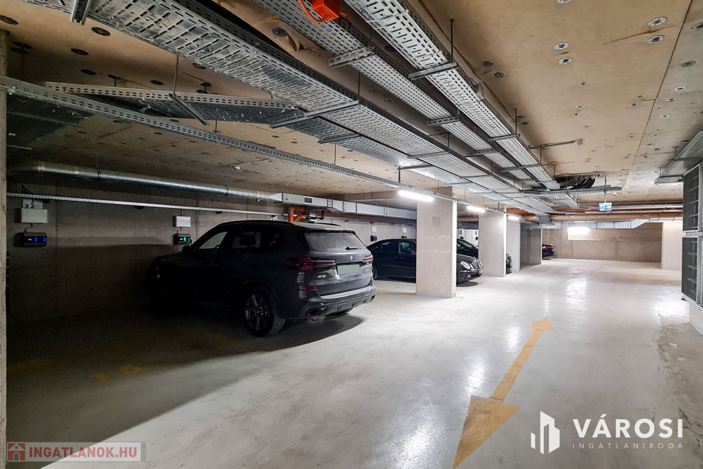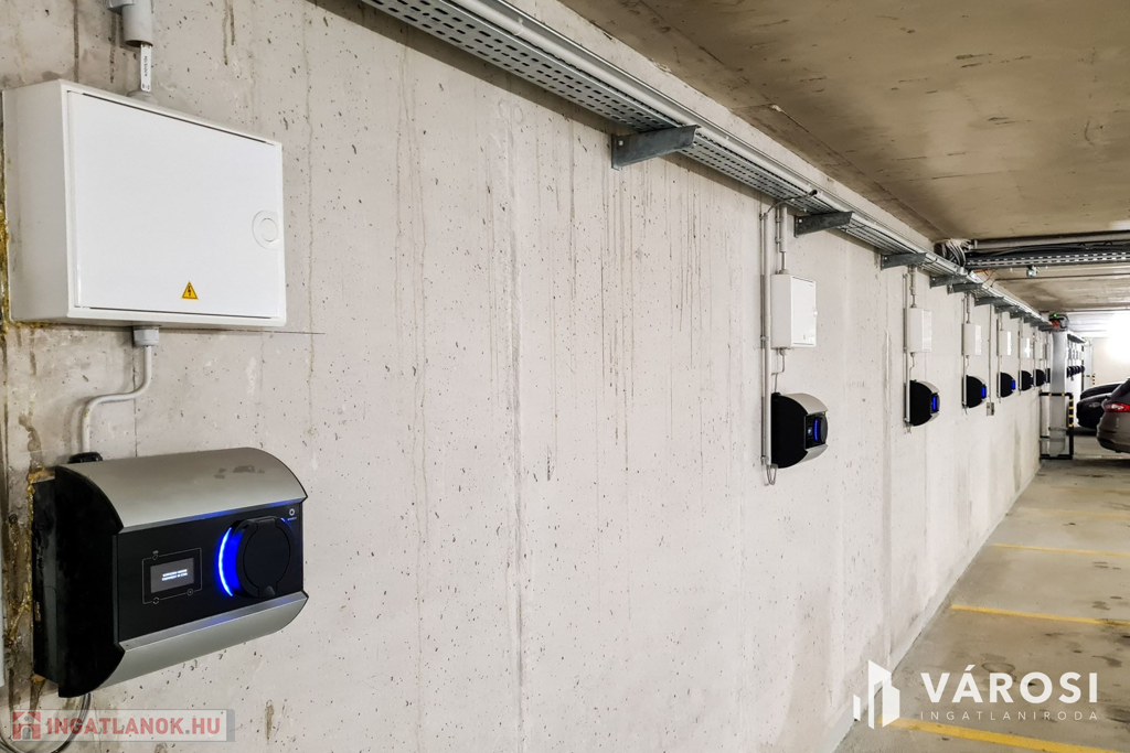 Eladó a 13. kerület megújult részén, a Szabolcs utcában, a Park West társasházban egy elektromos autó töltésére alkalmas parkolóhely.