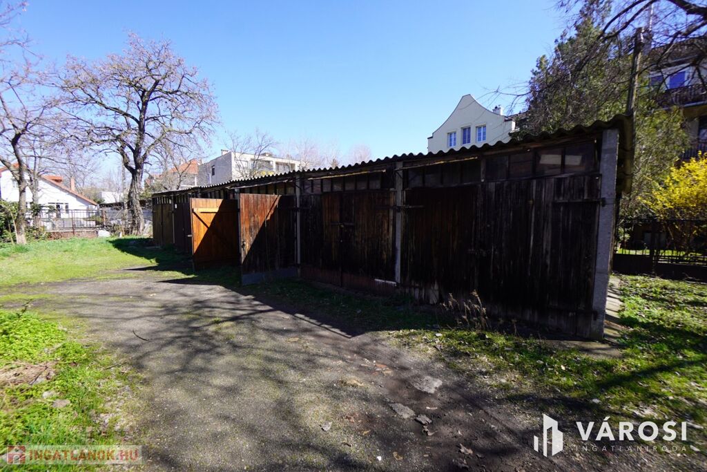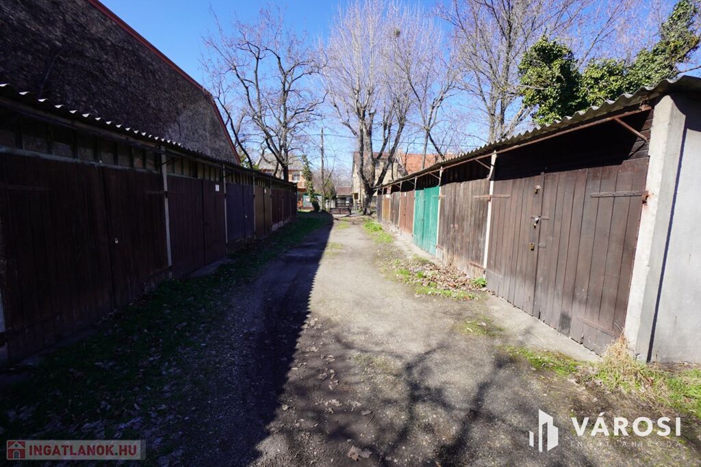 A garázs együtt épült a mellette helyet foglaló többi garázzsal önkormányzati területen. A telek bejárati kapuja zárható!