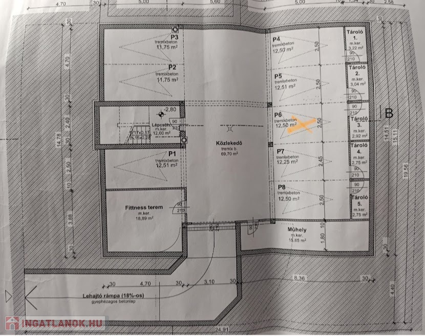 A hirdetéshez alaprajz tartozik,amelyen a P2-P3-as beálló képezi az eladás tárgyát.