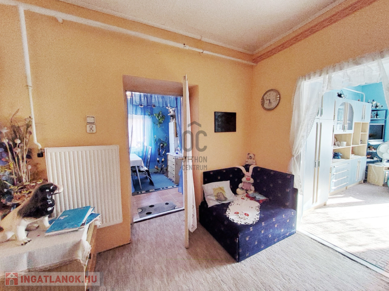 Szobák laminált parkettával és szőnyegpadlóval, többi helyiség járólap aljzat burkolattal van borítva. Melegvízet villanybojler adja.