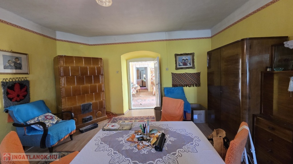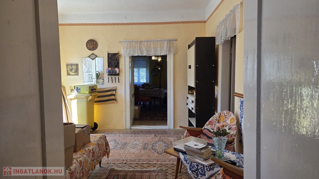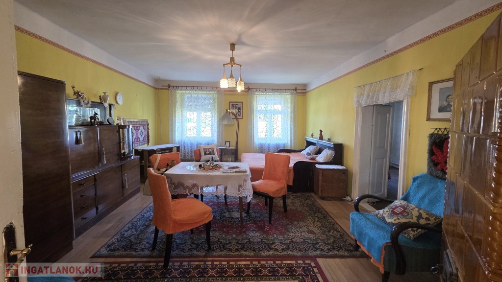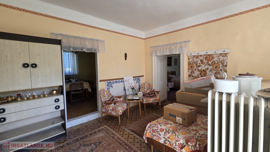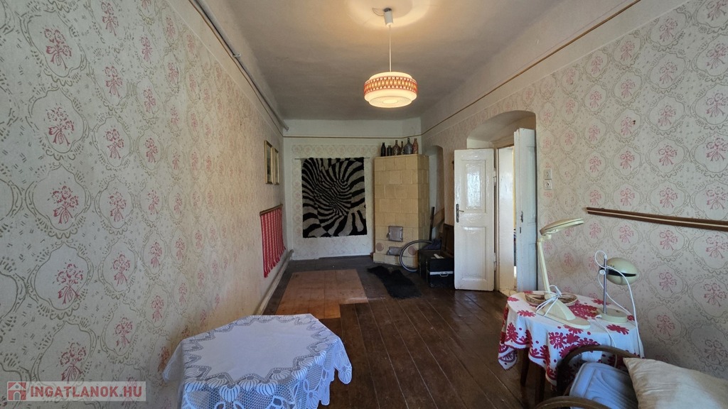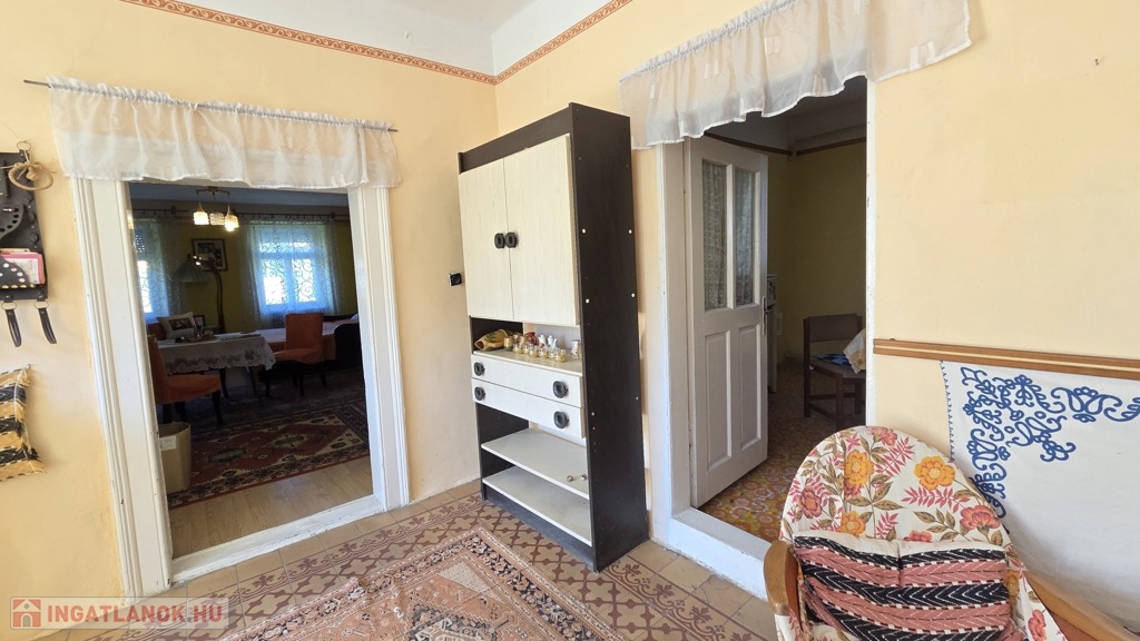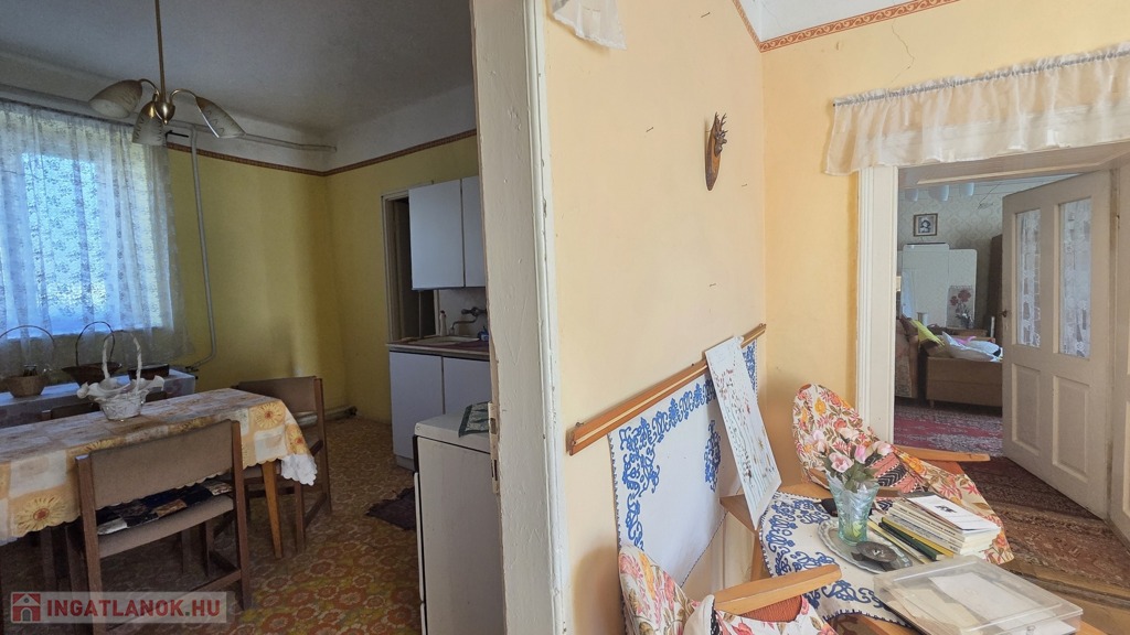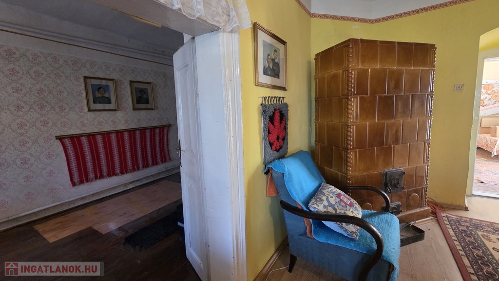 Belépve egy tágas előszobában találjuk magunkat. Innen érhető el mindhárom szoba, illetve a konyha. Szobái óriásiak, a legnagyobb 28 m2, tehát akár még több szoba is kialakítható benne. 3 cserépkályhával oldották meg a fűtést, de gázkazánt is találunk benne. Az ingatlan eredetileg részben körbejárható volt, azonban a konyhát és a szobát összekötő ajtót megszüntették. Bármikor újra nyitható.
