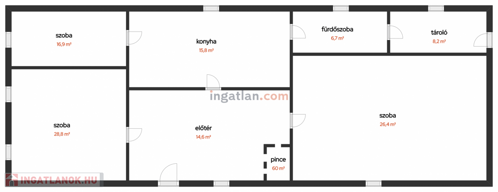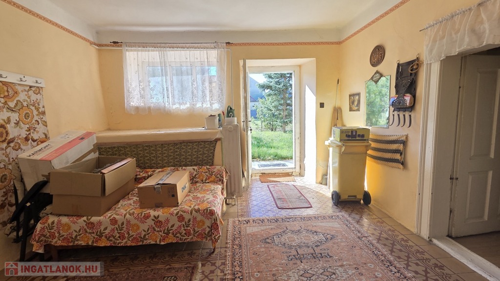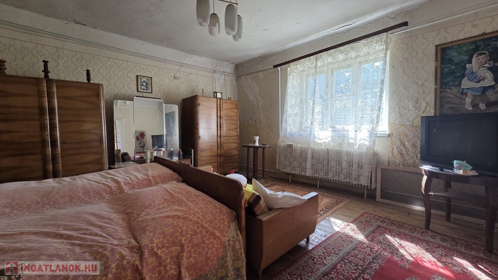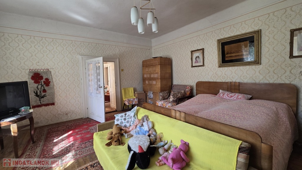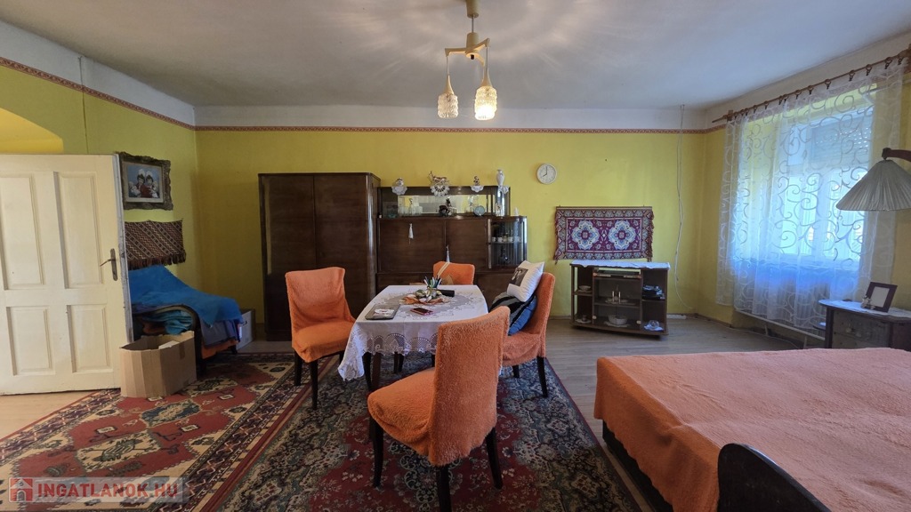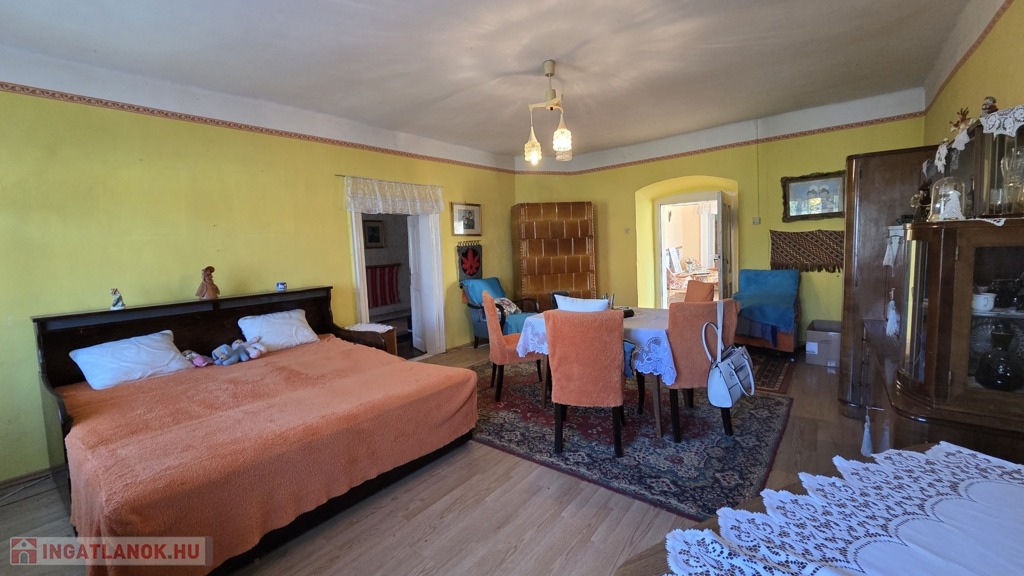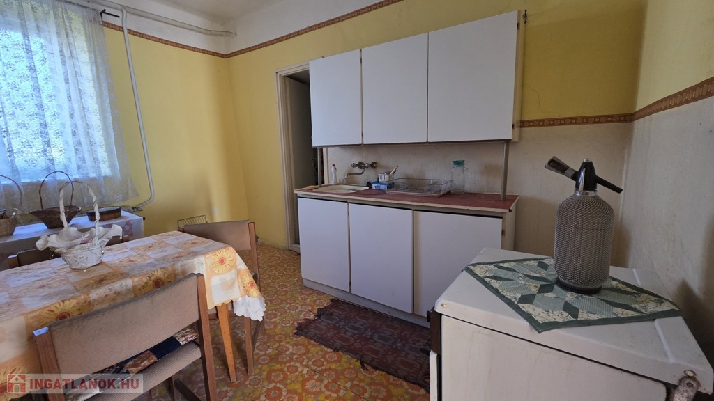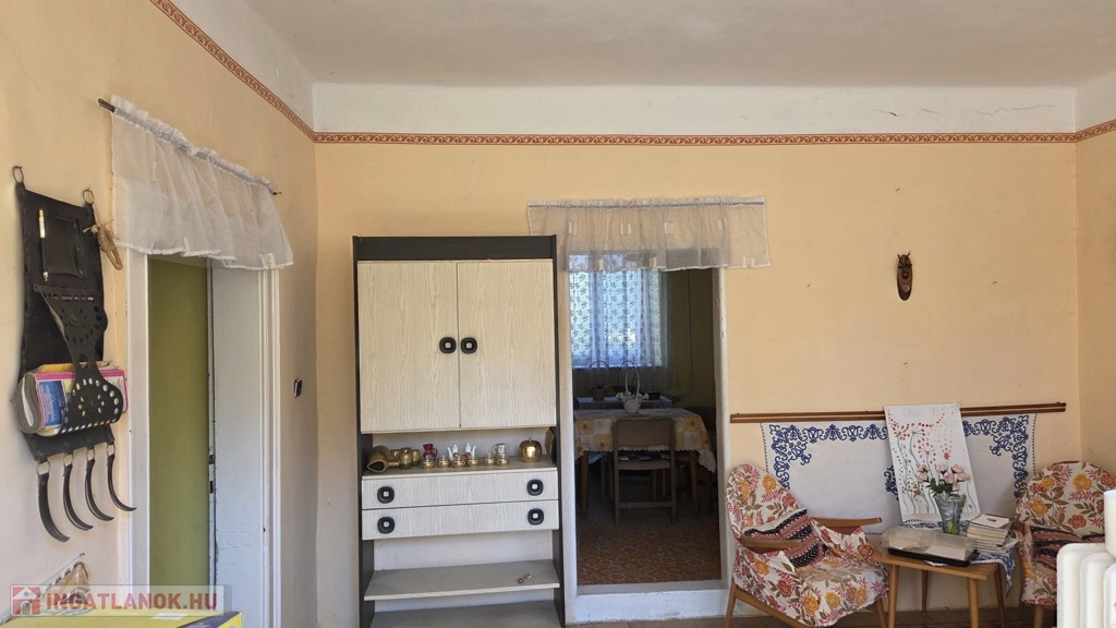 Belépve egy tágas előszobában találjuk magunkat. Innen érhető el mindhárom szoba, illetve a konyha. Szobái óriásiak, a legnagyobb 28 m2, tehát akár még több szoba is kialakítható benne. 3 cserépkályhával oldották meg a fűtést, de gázkazánt is találunk benne. Az ingatlan eredetileg részben körbejárható volt, azonban a konyhát és a szobát összekötő ajtót megszüntették. Bármikor újra nyitható.
