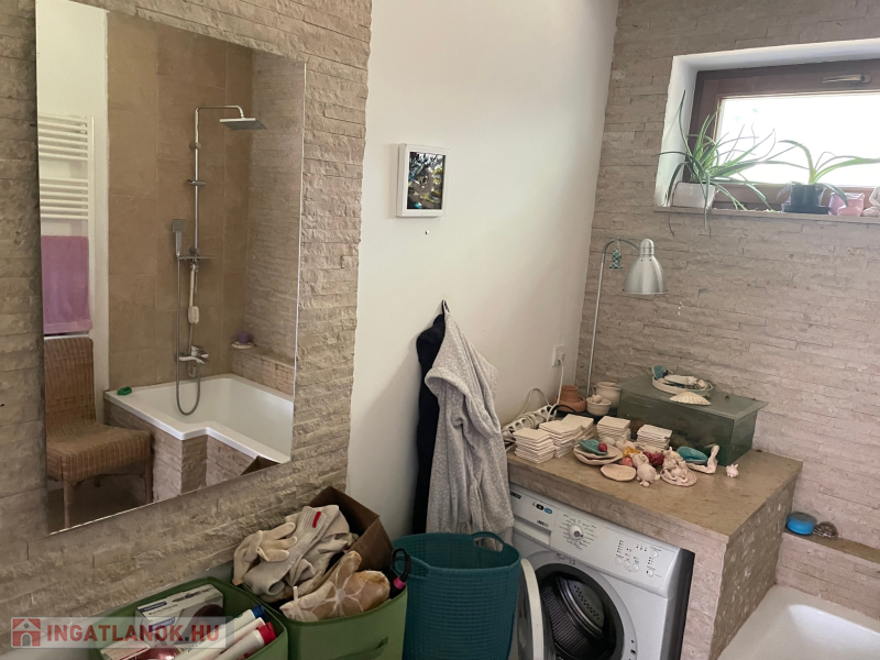 A ház helyiségei: Földszint: előszoba, nappali, konyha, háló, fürdőszoba, WC, lépcsőház, 8 m2 télikert, 5 m2 tároló (kintről megközelíthető), tágas terasz Tetőtér: külön bejárattal is rendelkezik, nappali + konyha, 2 hálószoba, fürdőszoba, 2 erkély