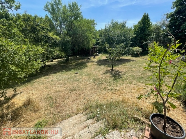 A ház 1397 m2 telken áll, amelynek utcafronti szélessége 38 m, enyhén lejtős terület, kissé trapéz alakú. A kertben számos termő gyümölcsfa, veteményes és dísznövények mellett egy 8 m2-es hőszigetelt (10 cm) faházikó is elhelyezésre került. A gazdaságos öntözést egy 8 m3-es földalatti esővízgyűjtő ciszterna biztosítja.