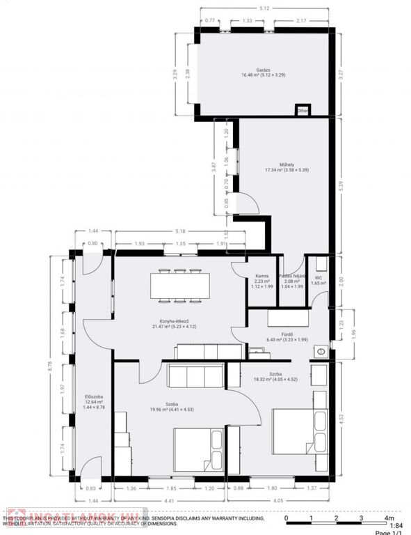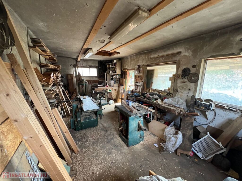A másik műhely a lakóháztól távolabb helyezkedik el, 31,6 m2-es, 2,8 m-es belmagassággal.