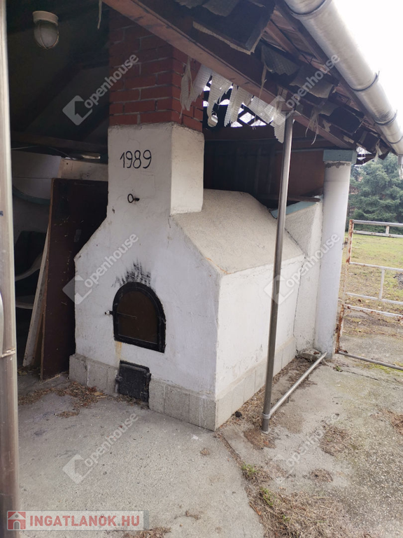 Telken megépítésre került kültéri kemence hatalmas fedett kiülővel, garázs, fedett tároló, zárható tároló, valamint a bejáratok előtt egy nagy fedett terasz kiülővel.