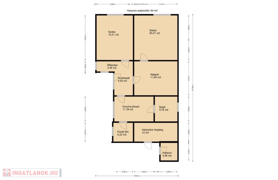 • 3 szoba, konyha-étkező, spájz, fürdő-WC, előtér, közlekedő