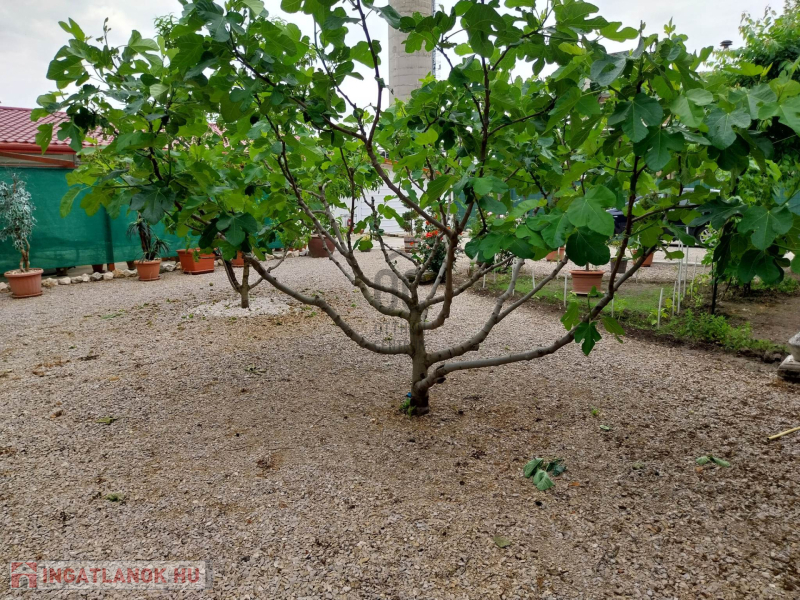 A murvás úton, fák és virágok között egy könnyűszerkezetes, speciális, német szigetelőannyaggal bevont házhoz érünk. Pillantásunkat sem tudjuk levenni róla, ahogy az elkerített terasz mögött ez a műanyag nyílászárókkal ellátott ingatlan elénk tárul. Amennyiben mégis elkalandozik a szemünk balra, láthatjuk, hogy a széles utcafront magas kerítésén belül, az udvarban egy bárpult grillezővel, asztalokkal, fedetten tárul elénk.