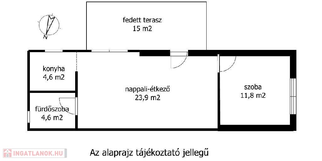 A lakóház nettó alapterülete 45 m2, a fedett terasz pedig 15 m2.
