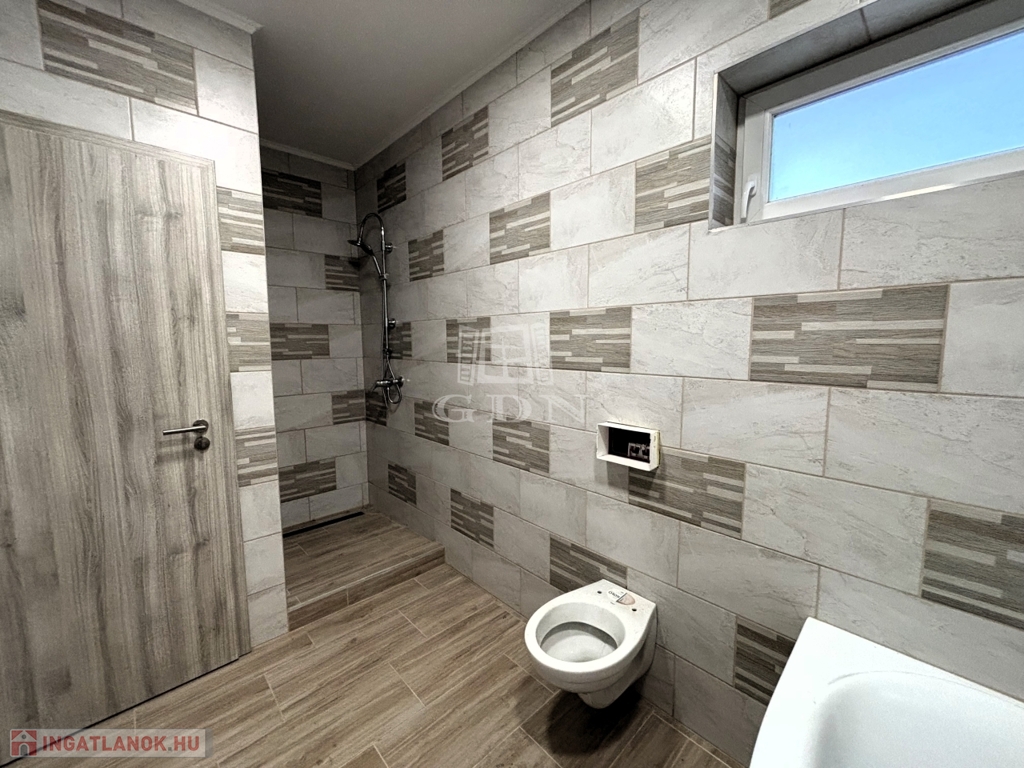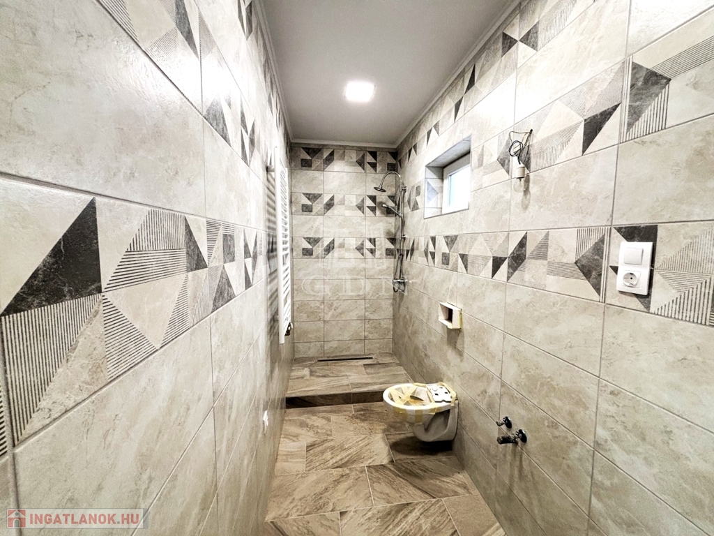 A másik fürdőben zuhanyzó, + GEBERIT WC.