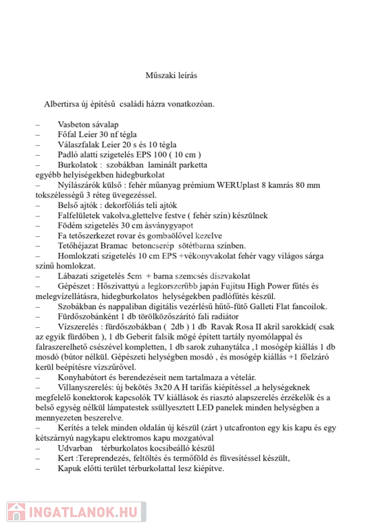 - Külső nyílászárók: fehér műanyag, 3 rétegű üvegezéssel