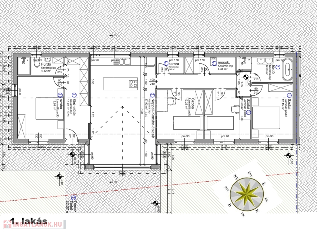 - Terasz: 22 m2, 600m2-es SAJÁT KERT