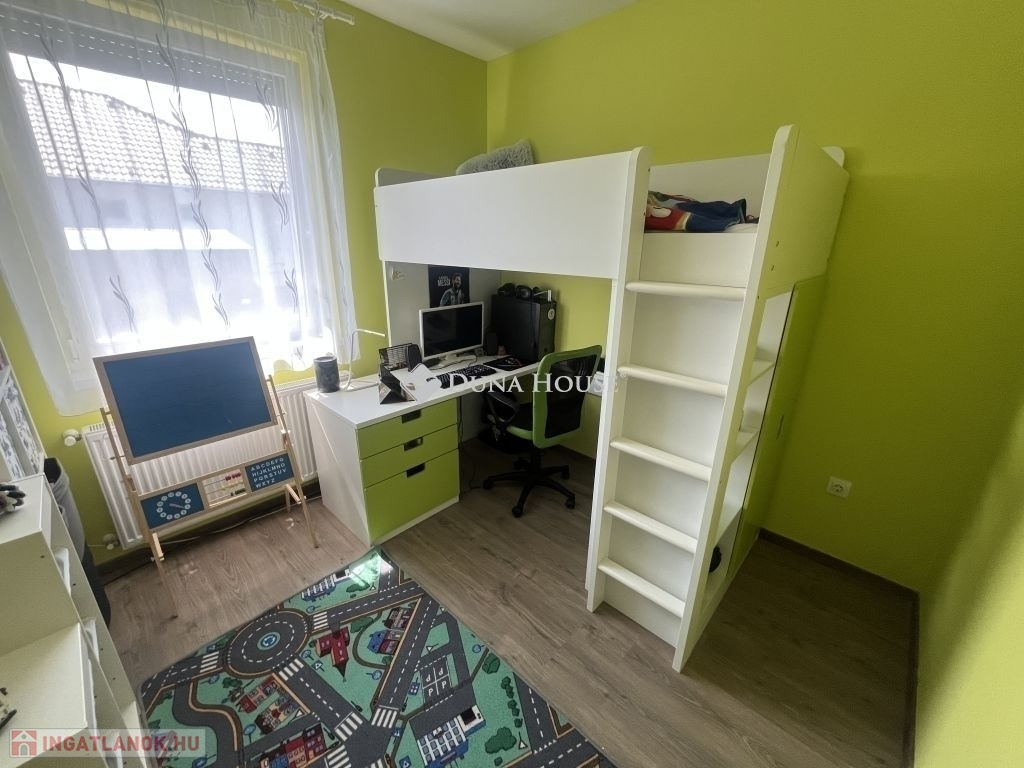 Családosok figyelmébe ajánlom ez az albertirsai 5 szobás álomotthont!A három éve épült ikerház fél önálló 884nm saját, elkerített telekrésszel rendelkezik. Az összközműves épületben öt hálószoba, tágas - világos amerikai konyhás nappali, épített zuhanyzós - kádas fürdő-wc, háztartási helyiség, különálló illemhely, valamint közlekedő helyiségek lettek kialakítva. Az épület téglából épület, 30 N+F Porotherm főfalai 15cm szigeteléssel lettek ellátva, a födém 25cm befújásos cellulóz szigeteléssel lett ellátva. Ezeknek, valamint a korszerű nyílászáróknak köszönhetően nagyon alacsony rezsivel tudja fenntartani a leendő tulajdonos családjának otthonát. A fűtésről és a meleg víz ellátásról BAXI cirkó, a kellemes nyári hőérzetről pedig 2 db inverteres hűtő-fűtő klima gondoskodik. Az energiahatékonyságot szolgálja a 2 kW-os napelem rendszer is. Az ingatlan biztonságáról kamera rendszer gondoskodik. A kerti szerszámok, kerékpárok biztonságosan őrizhetőek az udvaron található kér db, beton alappal rendelkező tároló épületben. A tágas, világos fedett terasz ideális a nap végi megérdemelt pihenésre, baráti összejövetelekre.Az épület akár 3 gyermekes CSOK Plussz támogatássa, valamint a 3%-os hitellel is megvásárolható.A teljes hitelügyintézés folyamatát díjmentesen végezzük el Ön helyett.Várom megtisztelő hívását a hét bármely napján!