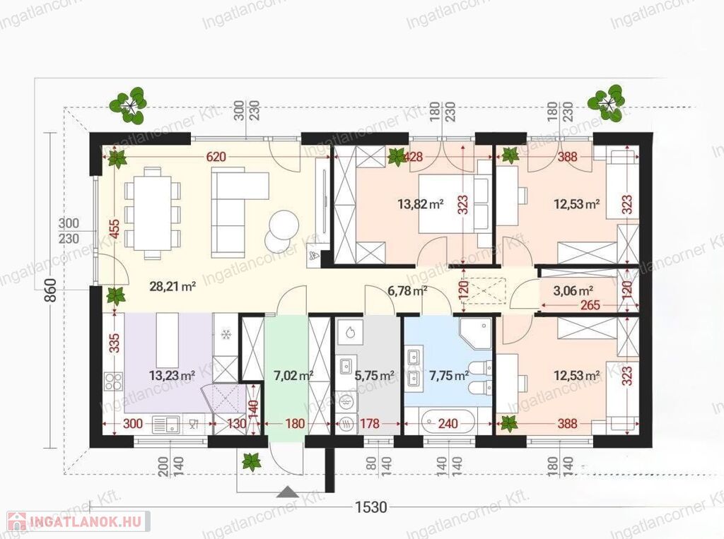 •A szobák száma, elosztása még változtatható