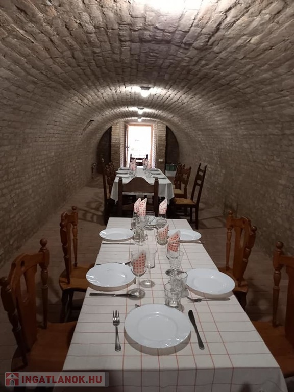 Vendégek részére felszerelt közös konyha, ápolt udvar és hangulatos borospince