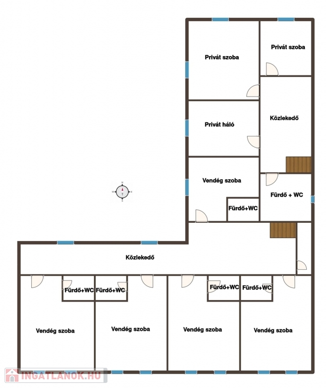 Vendégeknek 6 különálló szoba, mindegyik saját fürdőszobával és WC-vel