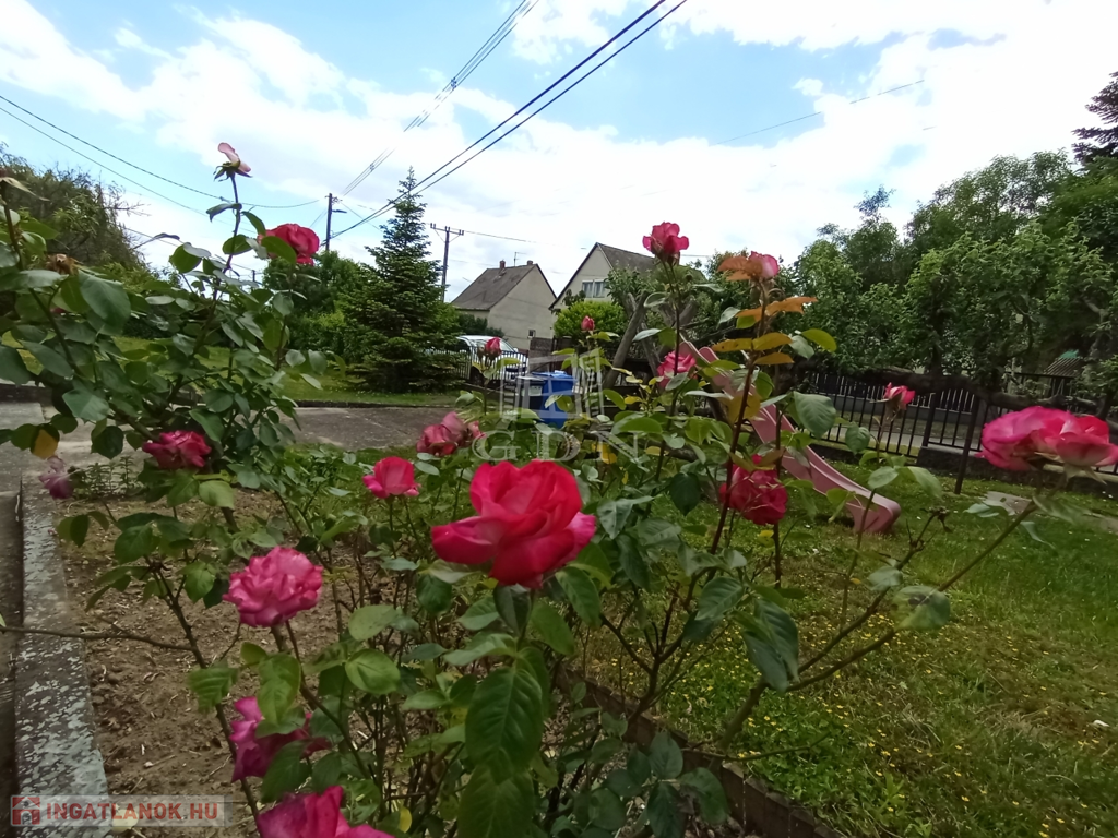 * 831 m²-es telek – tágas, napfényes kert rózsabokrokkal, termő gyümölcsfákkal, ahol bőven elfér egy medence