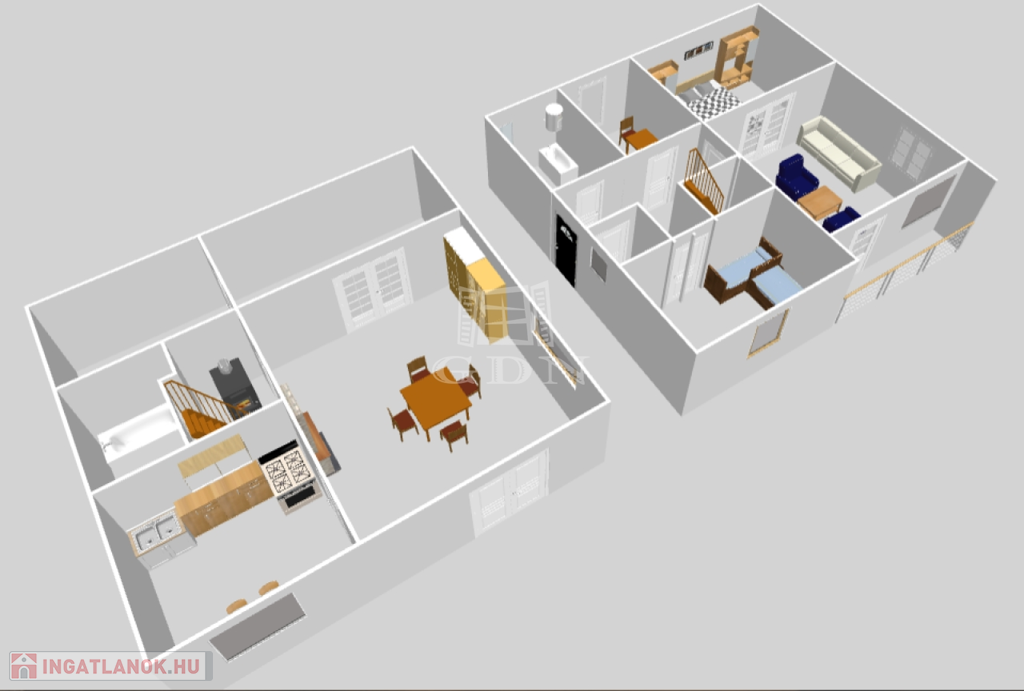 * Tetszés szerint a belső lépcsőn keresztül a ház egy egységként is használható vagy a lépcsőház ajtaját zárva 2 külön apartmanként is funkcionálhat, hiszen a két szint kívülről külön bejárattal is rendelkezik