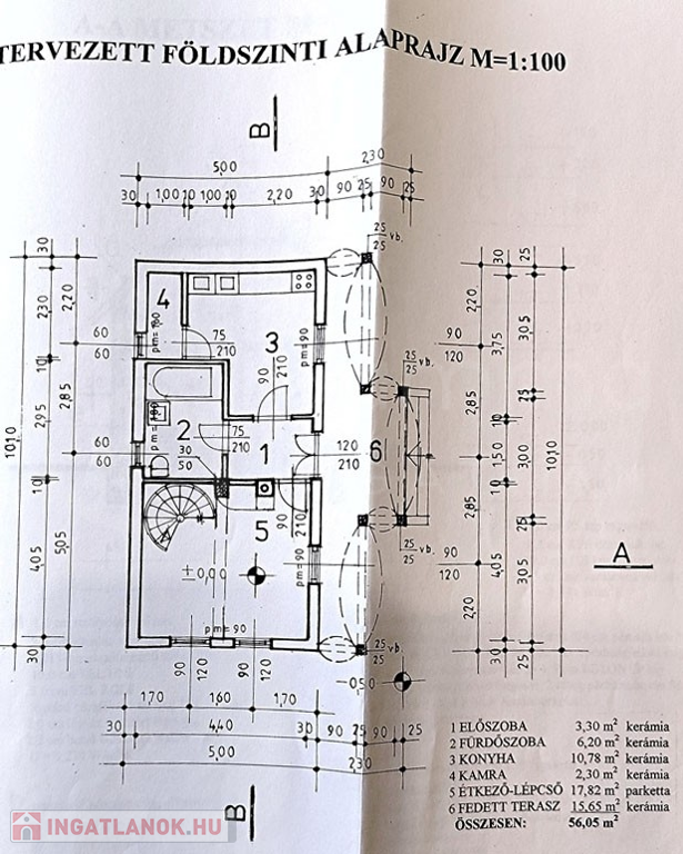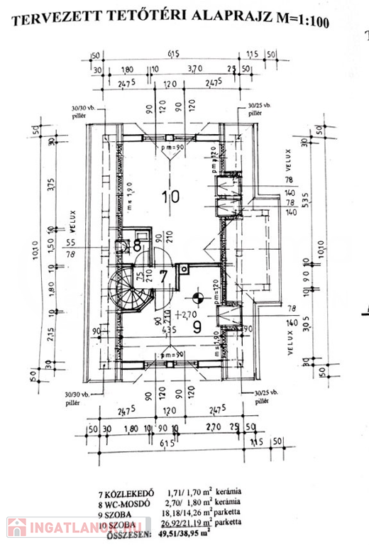 A lakás nettó alapterülete: 56,05+38,95 m2 (fölszint+tetőtér)