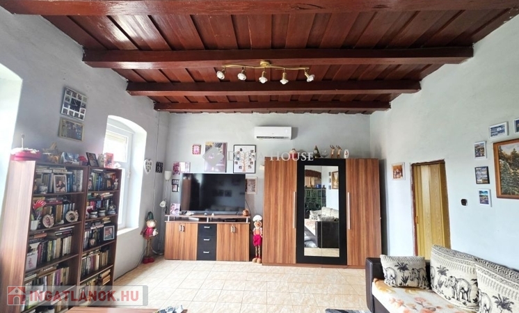 Pécstől 12 km-re Aranyosgadányban eladó egy 100 nm-es, jelenleg konyha-étkező-nappali+2 szoba elosztású, felújított, klímával és cserépkályhával fűtött vegyes falazatú családi ház, lemezgarázzsal, melléképületekkel, 1700 nm-es ÖSSZKÖZMŰVES sík telken.Az ingatlanon az elmúlt években a következő felújítások történtek:- új tető- új műanyag nyílászárók- új víz- és villanyvezeték hálózat (3 FÁZISÚ IPARI ÁRAMMAL!)- új burkolatok- konyhabútor cseréje- 2 db hűtő-fűtő klíma beszereléseIár: 39,9M FtA HÁZHOZ TOVÁBBI SZOMSZÉDOS ÖSSZ. 8000 NM TERÜLET MEGVÁSÁROLHAT+ 5M FT ÁRON!Belterületi építési telek mérete: 1209 nmKülterületi telek mérete: 6782 nm