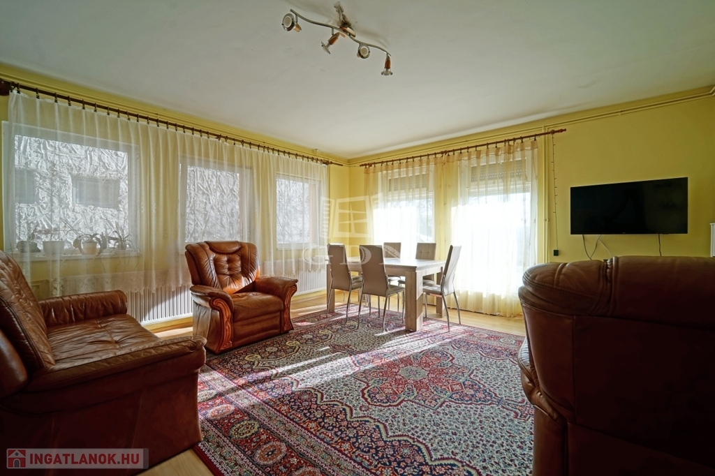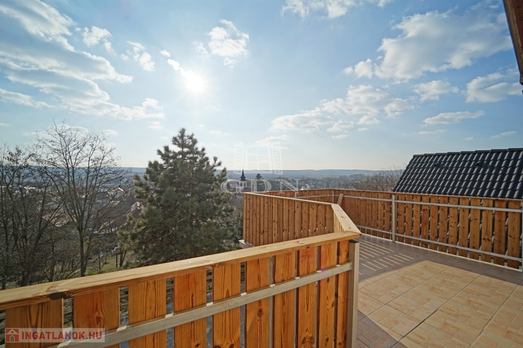 Az 54m2-es nappaliból gyönyörű panoráma látható a 15 m2-es terasz irányába. A 9,92 m2-es hálószoba is panorámás kilátással rendelkezik. További két szoba található ezen a szinten és egy igényes anyagokkal felújított fürdőszoba is.