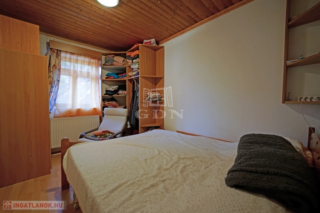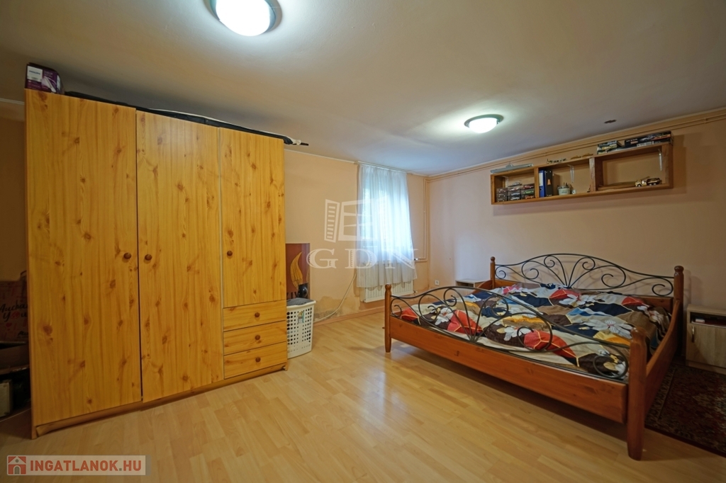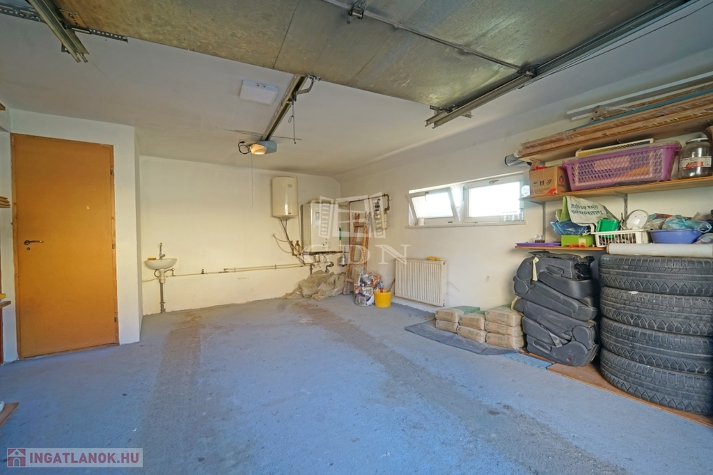 A kertben a beton burkolatú udvar rész alatt 30m2 tárolásra alkamas helyiség van.
