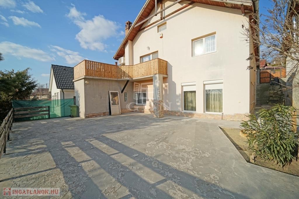 Aszódon a Béke utcába 8. szám alatt 381 m2-es összközműves telken eladó egy panorámás, három generációs tégla építésű, kétszintes családi ház.