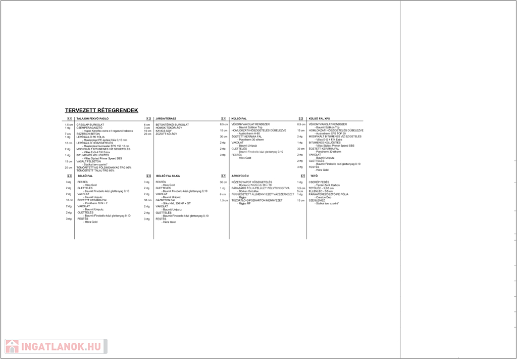 Az ingatlanok 30-as Nútféderes tégla falazóelemből épülnek, fafödémmel. A tető héjazata antracit betoncserép lesz, a homlokzatok 15cm EPS, a padló 10cm lépésálló, a födém 25cm ásványgyapot szigeteléssel lesz ellátva.