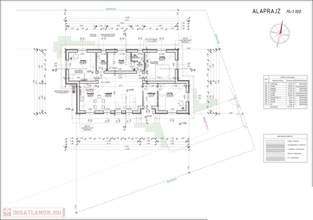 Az ingatlan Porotherm P30N+F téglából épül, fa födémmel. Külső nyílászárók korszerű 3 rétegű üveggel szerelt műanyag themo kivitelűek lesznek.