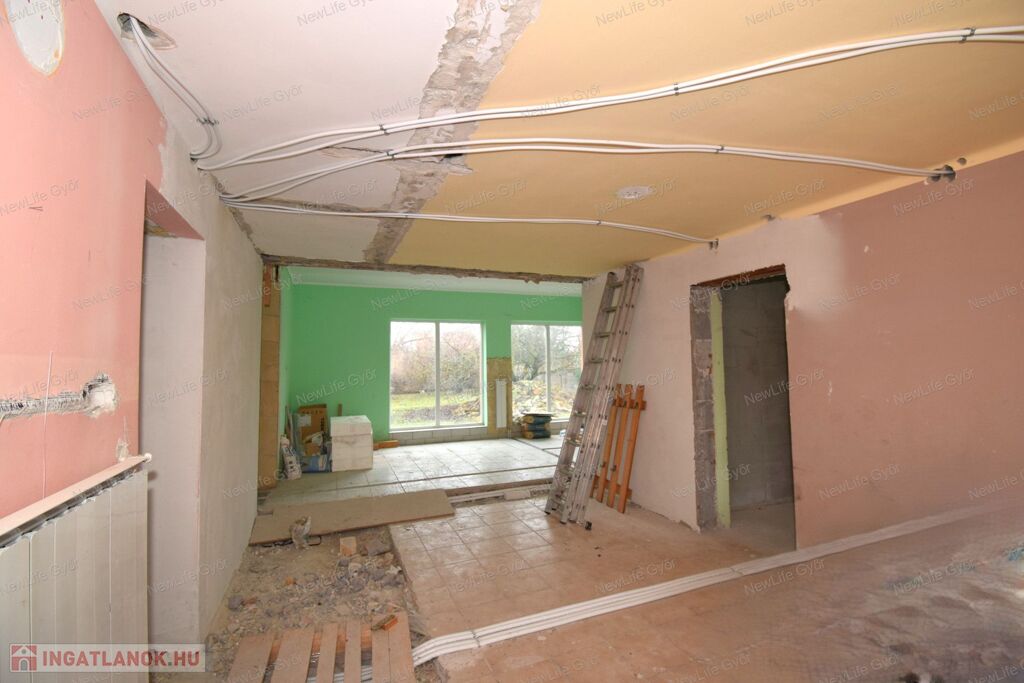 (Tetőszigetelő anyag, belső laminált padló burkolat, összes beltéri ajtó, fürdőszoba szaniterek, + ajándékként a könyvtár szobába egy könyvtárnyi könyv!)