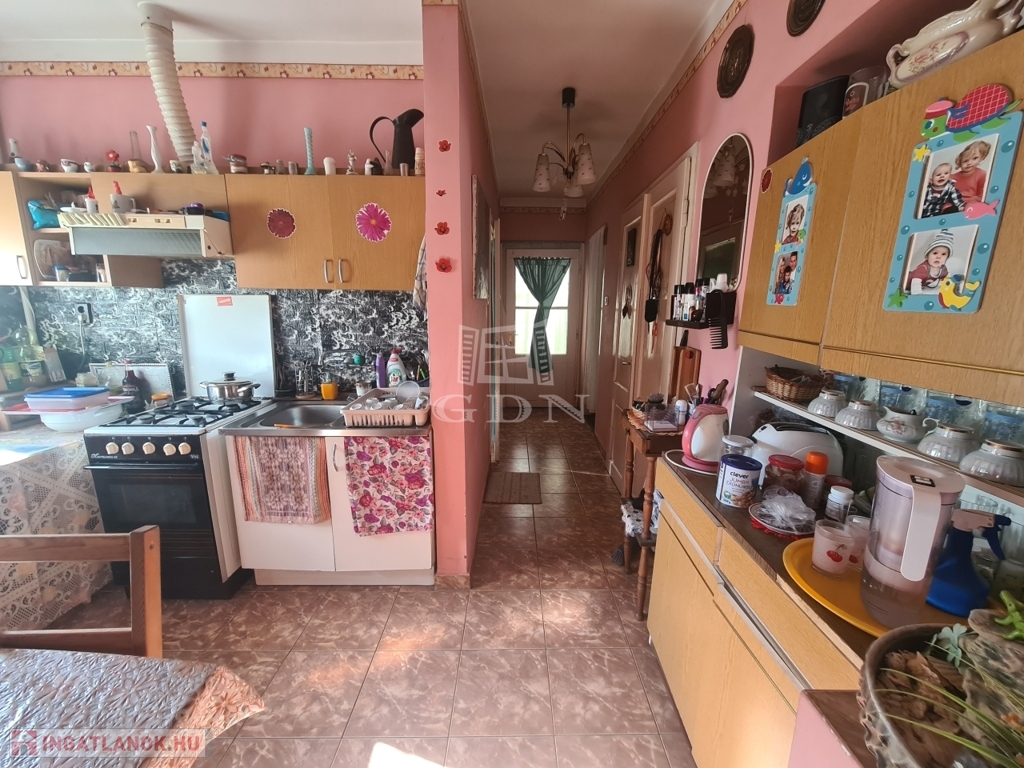 Az ingatlanban található 3 szoba, egy gardrób, továbbá egy fürdőszoba+ wc, egy konyha étkezővel, valamint egy pince és 2 kamra melyből az egyikben található a padlásfeljáró.