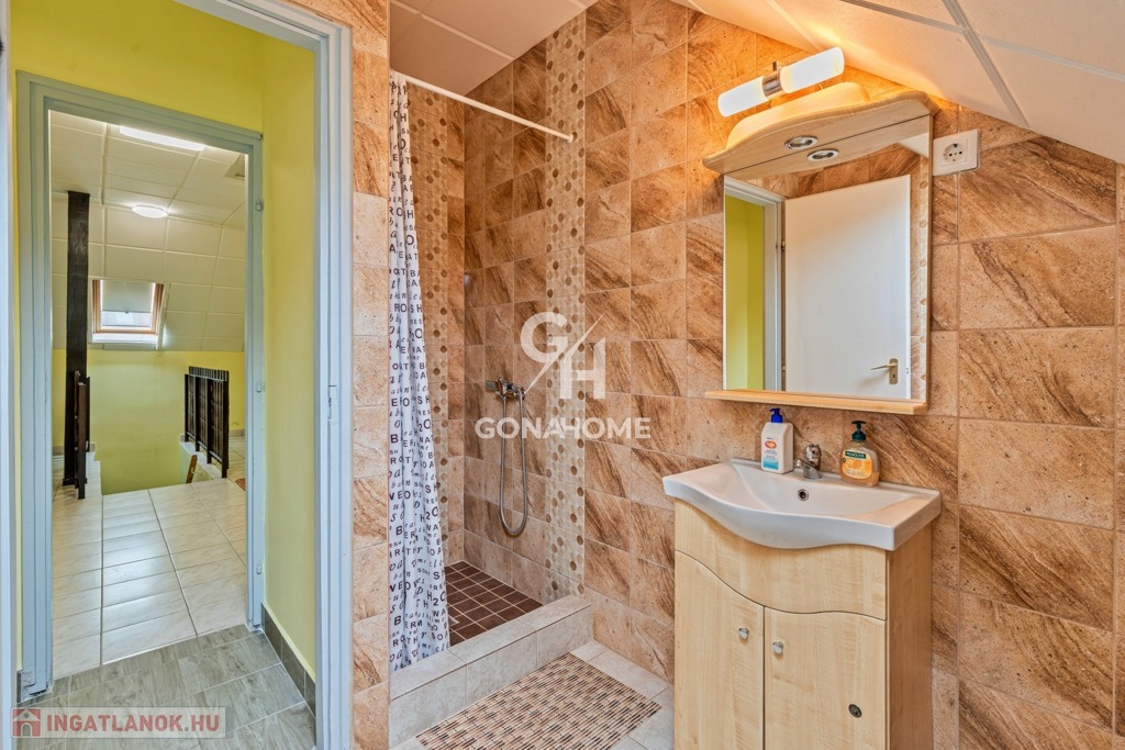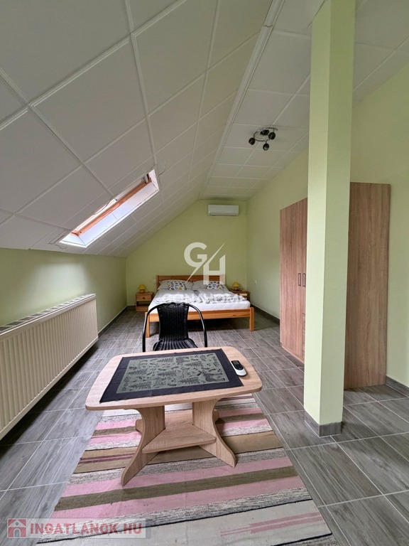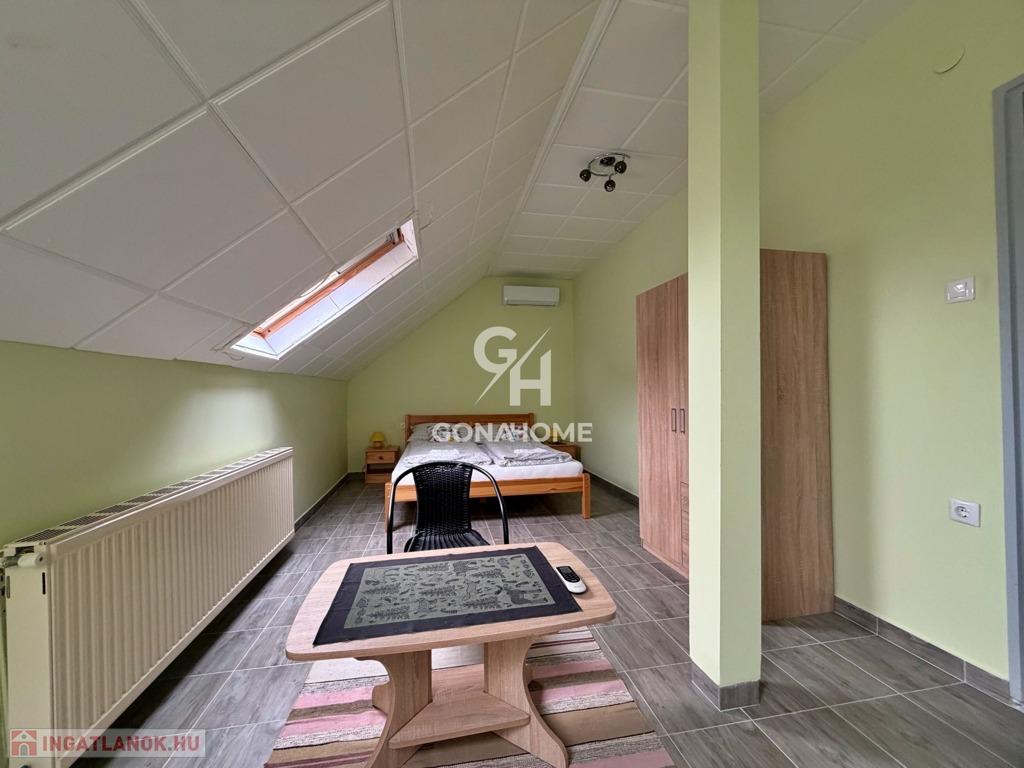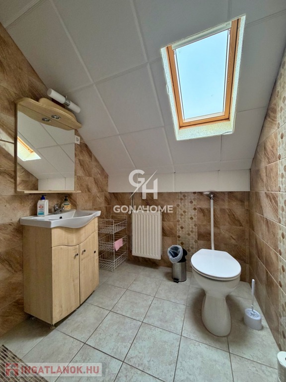 - Az ingatlan 2 szintből áll, az előszobából külön bejáraton keresztül megközelíthető a beépített tetőtér, valamint a földszinti lakrész is.