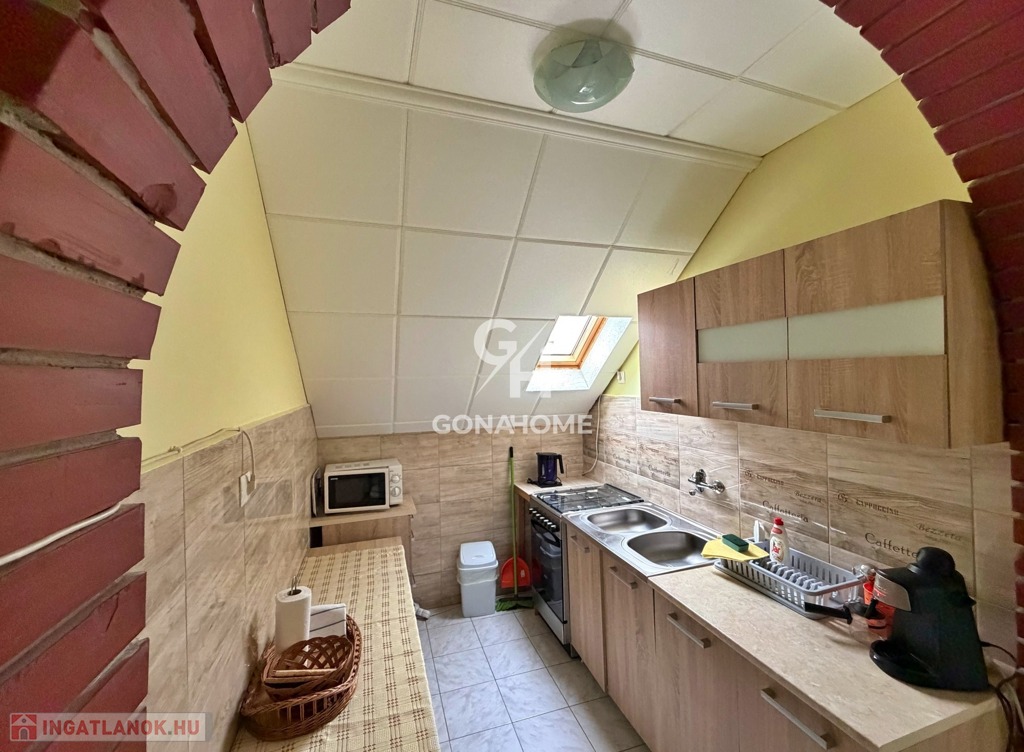 - Az ingatlan 2 szintből áll, az előszobából külön bejáraton keresztül megközelíthető a beépített tetőtér, valamint a földszinti lakrész is.