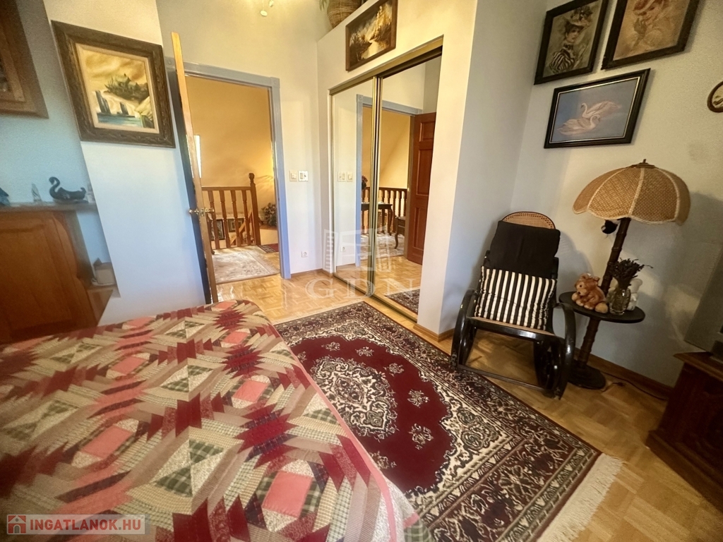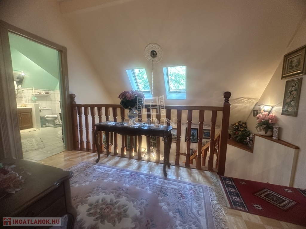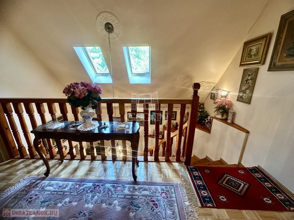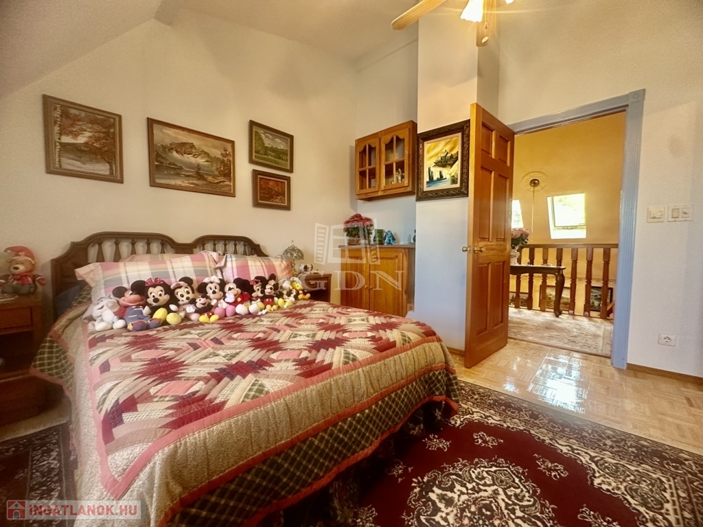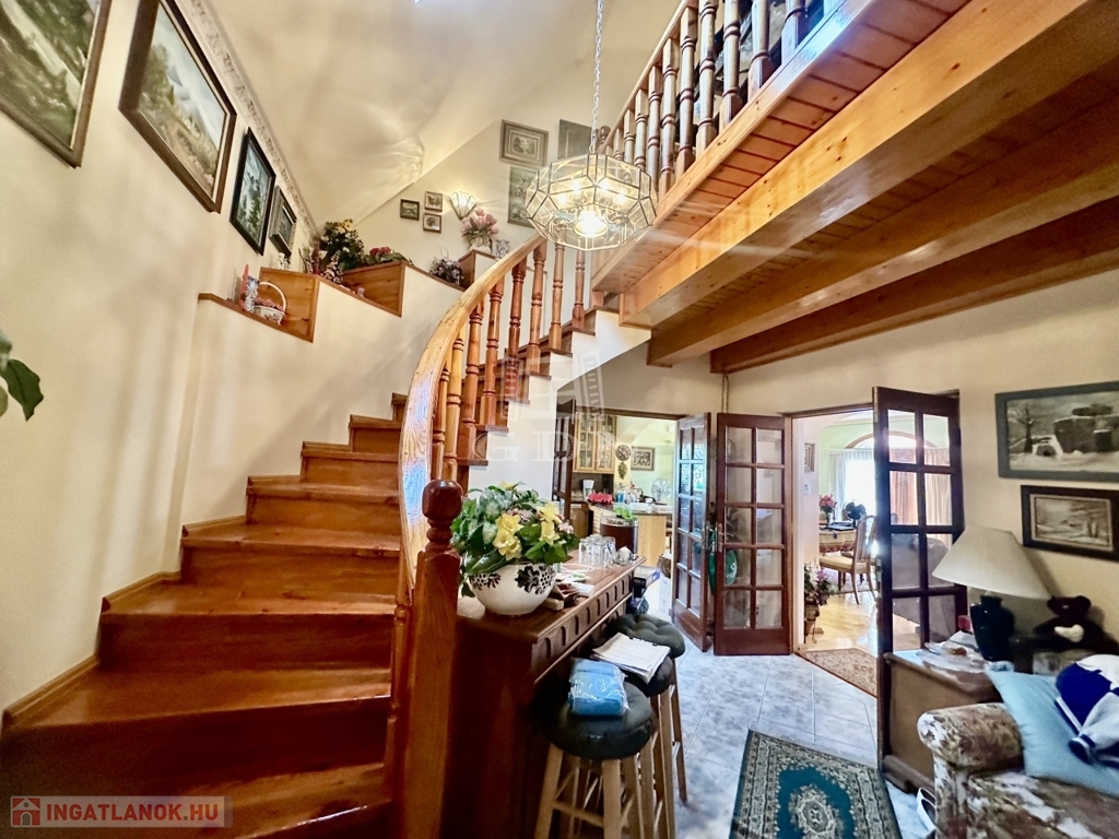 Az emeletre csodás vörös fenyőből megépített lépcső-soron mehetünk fel, itt 3 hálószoba és 2 fürdőszoba található, egyik közvetlen hálóból nyílik.
