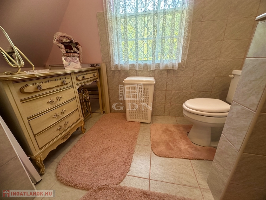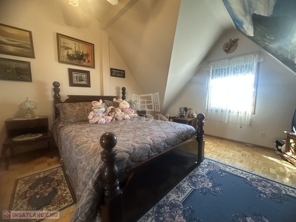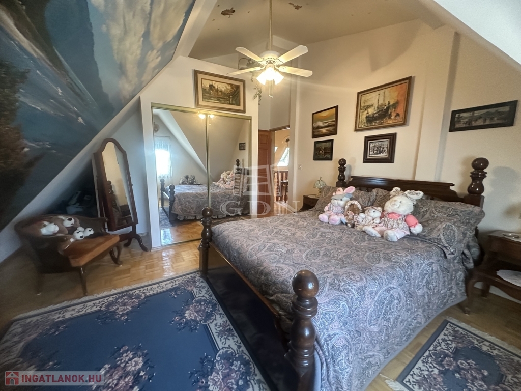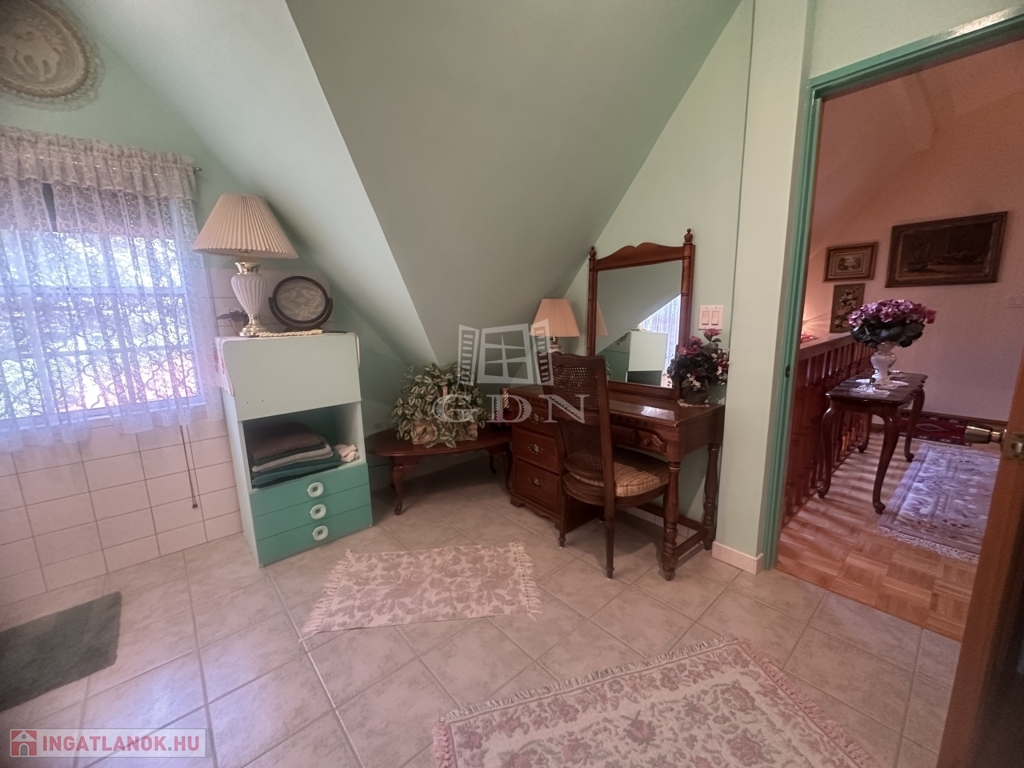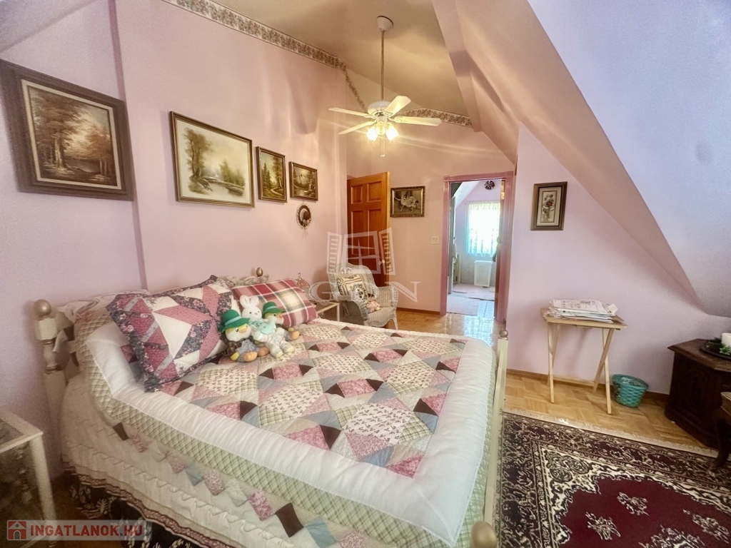Az emeletre csodás vörös fenyőből megépített lépcső-soron mehetünk fel, itt 3 hálószoba és 2 fürdőszoba található, egyik közvetlen hálóból nyílik.