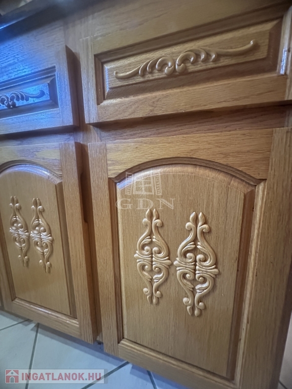 A ház földszintjén 1 hálószoba, fürdőszoba, előszoba, közlekedő, nappali, konyha, étkező lett kialakítva közel 100 m2-en, valamint a 34 m2-es terasz.