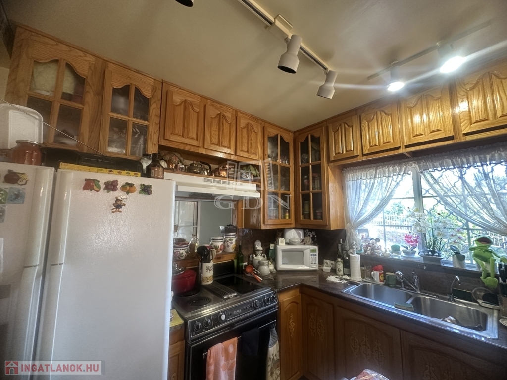 A ház mögötti udvaron 2 autó számára fedett beálló van, de emellett egy földbe megépített garázs és nyári konyha, fürdőszoba is hasznosítható. A kaputól egészen idáig vezető út szépen térkövezve lett. A felette lévő kert részen több gyümölcsfa, fenyőfa található.