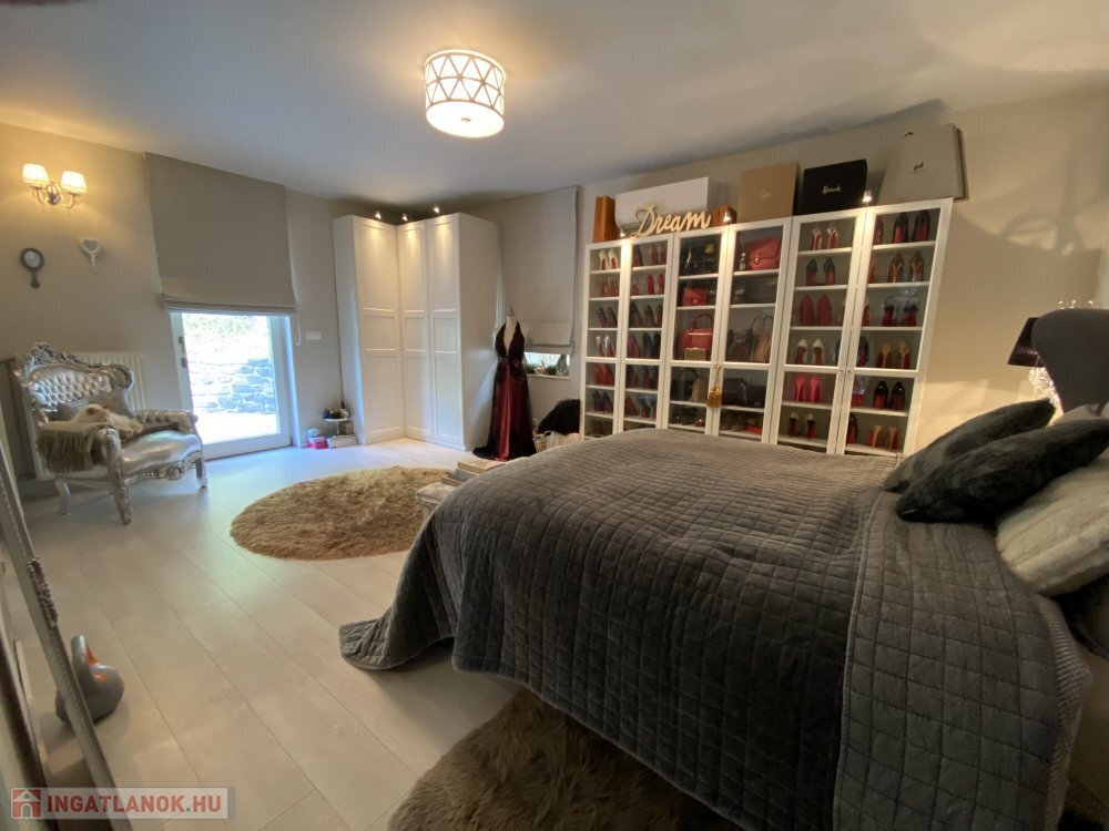 Ezen a szinten továbbá 3 hálószoba van, kettőből saját fürdőszoba is nyílik, míg a harmadik hálószobához egy kisebb gardróbszoba kapcsolódik.