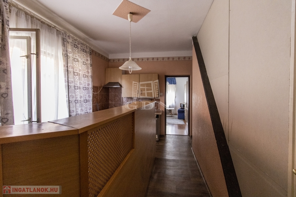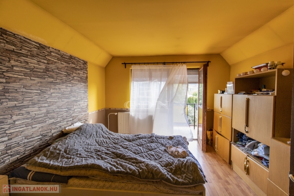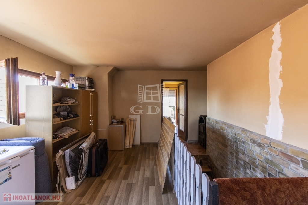 Az emelt földszinten 3 szoba, közlekedő, fürdőszoba, konyha + étkező; a tetőtérben 1 szoba és egyfélkész fürdőszoba jellemzi.