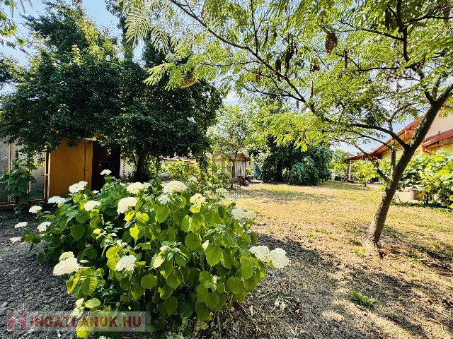 A ház körül elterülő 1989 nm-es telek nemcsak a természet közelségét biztosítja, hanem számtalan lehetőséget kínál. Körte, alma, szilva, cseresznye, szőlő található a kertben. Amelyeket FÚRT KÚTRÓL lehet öntözni!