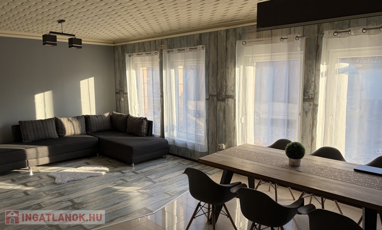 - 90 m²-es lakrész: 2 szoba, konyha-étkező, spájz, fürdőszoba és külön bejáratú toalett