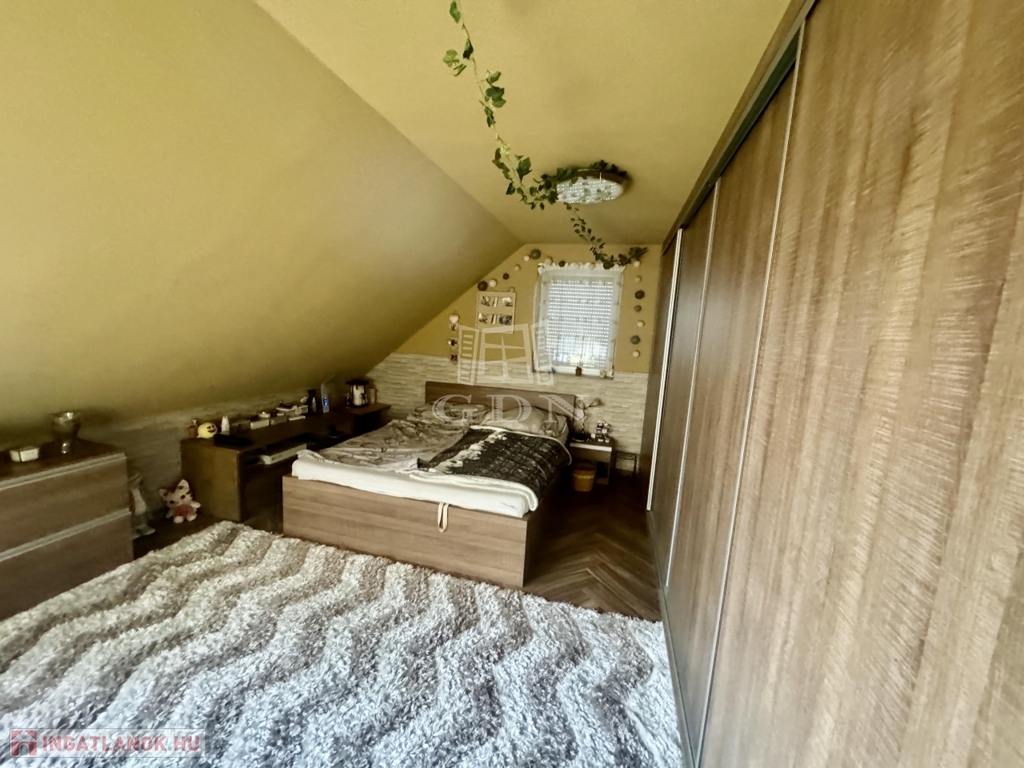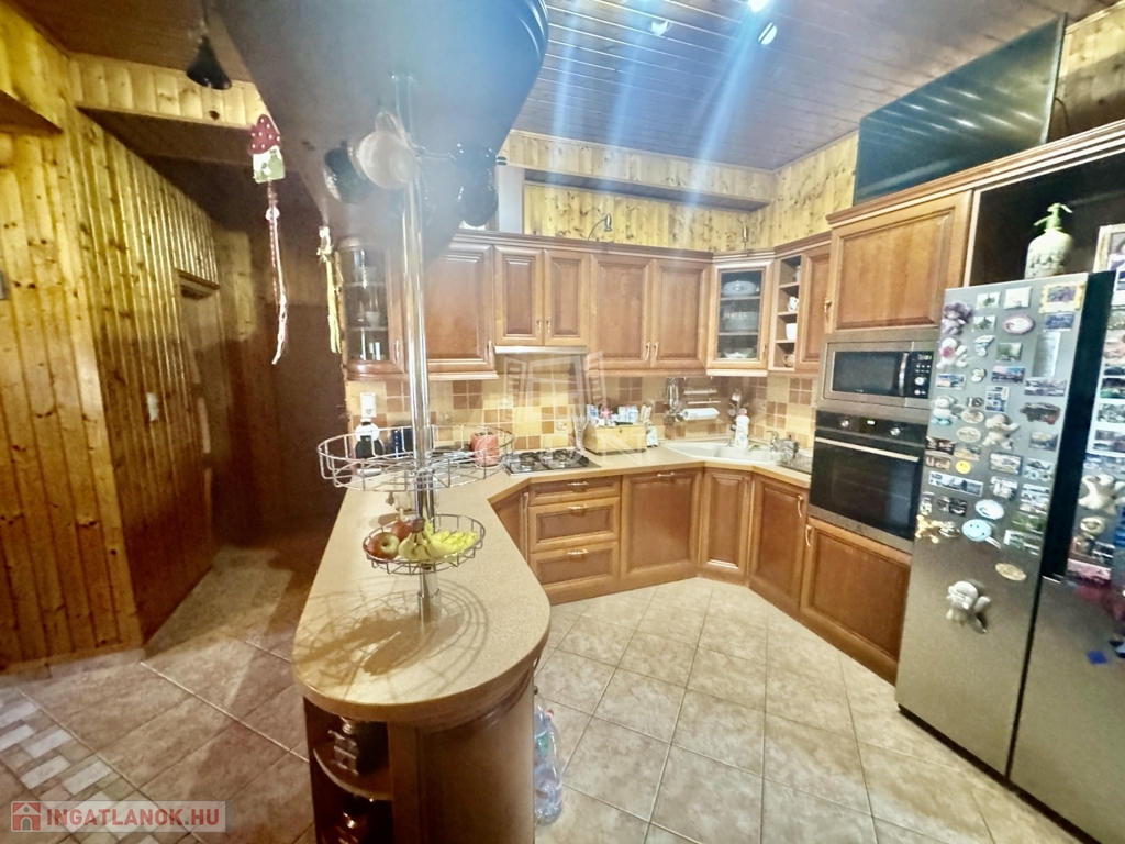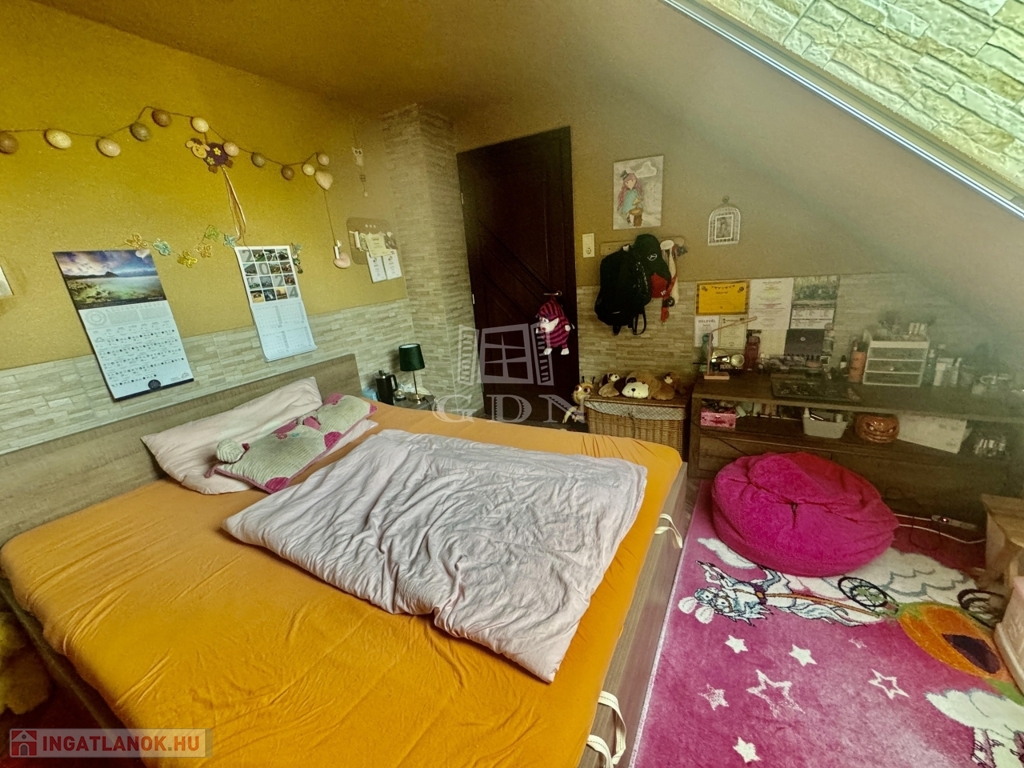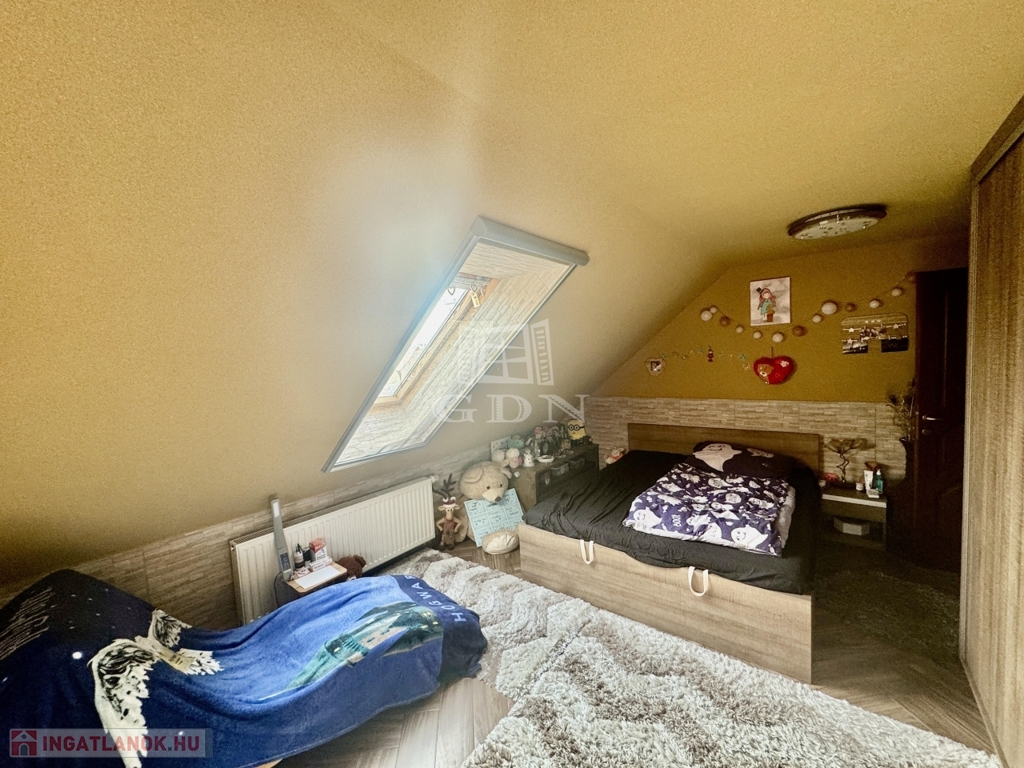 A házba belépve a földszinten világos tereket találunk, pazar nappali, amerikai konyha, 6 szoba, kamra, 2 fürdőszoba, WC garantálja a maximális kényelmet. A felső szinten, 3 szoba, nappali , fürdőszoba, található.