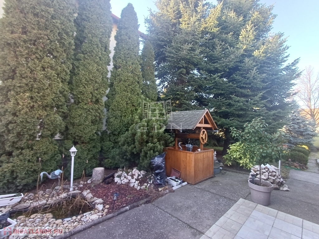 A házhoz pince is tartozik, valamint az udvarban fúrt kút segíti a kert gondozását. Az utcáról nyíló, elektromos kapuval ellátott 14 nm-es garázs kényelmes parkolást biztosít.