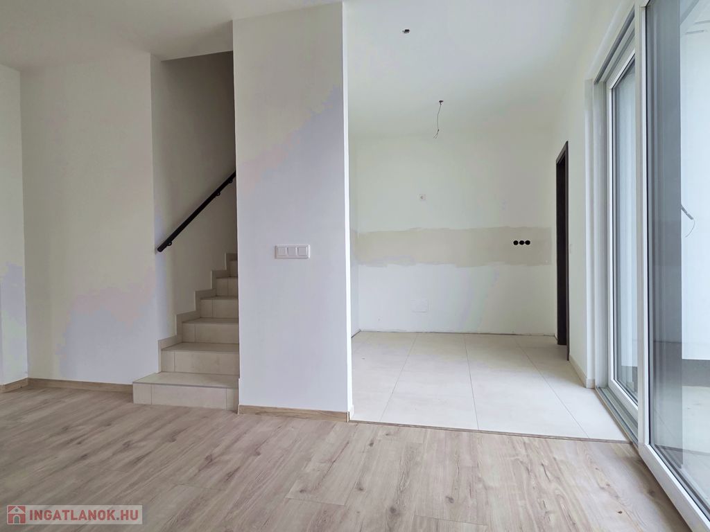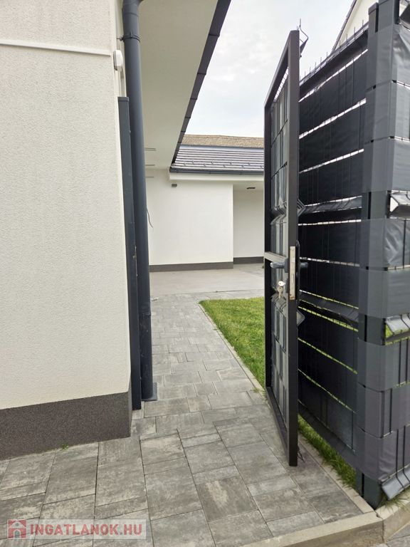 Baján, belváros közeli, új építésű, iker családi ház garázzsal, tárolóval, terasszal, kis kerttel. Modern dizájn.