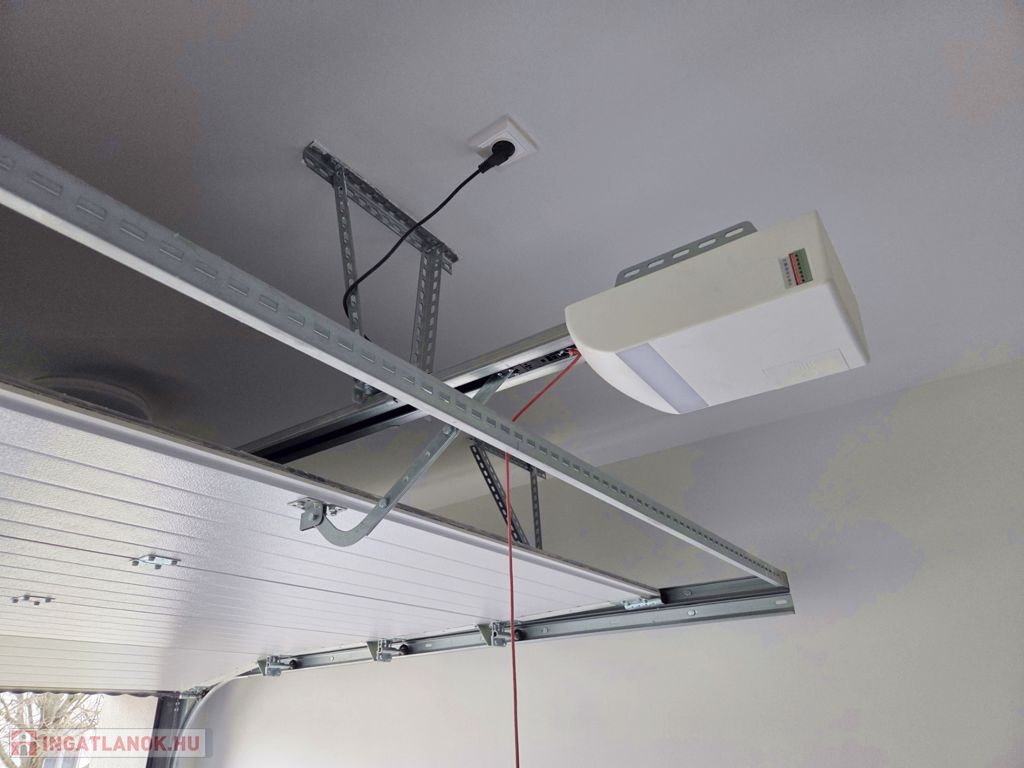 Utcáról megközelíthető fűtött garázs, motorosan mozgatható szekcionált minőségi kapuval, két bejárat, videós kaputelefon.