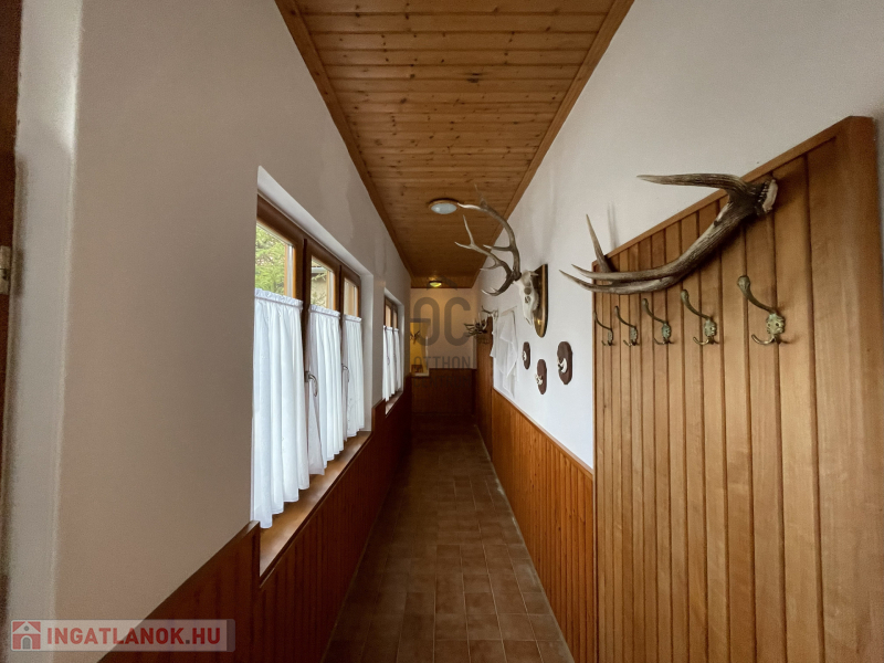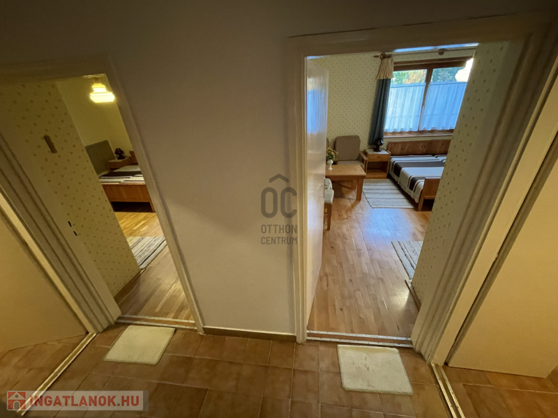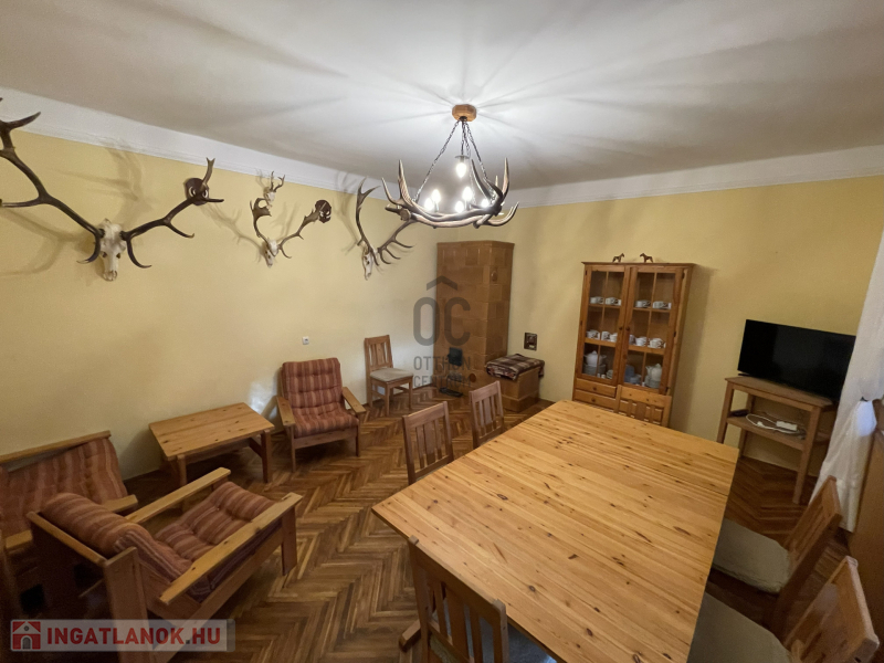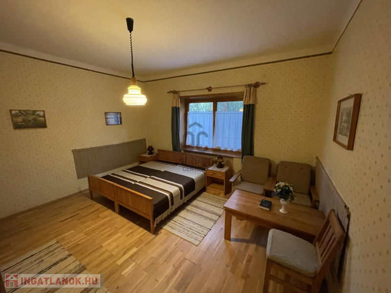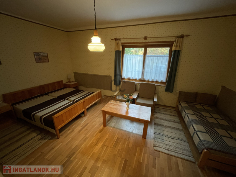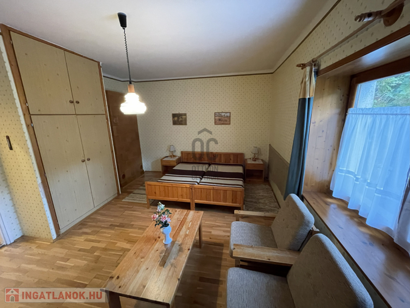 Ebben a környezetben vált eladóvá ez az apartmanház, mely kisebb átalakítása, modernizálása után kiválóan hasznosítható, kiadható. A terület hatalmas és gyönyörű környezetben van, távol a város zajától. Három szoba, mindhárom szobához külön fürdőszoba,egy nagy közösségi tér, előtér, konyha alkotja. Fűtése cserépkályhával megoldott. Nyílászárói jó állapotú fa szerkezetűek. A szobák, közösségi terek burkolata, külső fal, tető, megkímélt állapotúak.