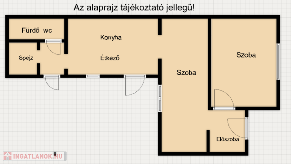 A bejárati ajtó új, biztonsági; a nyílászárók műanyag ablakok szúnyoghálóval, több helyen redőnnyel. A belső terek linóleummal burkoltak, a falak gipszkartonból és szigeteltek.
